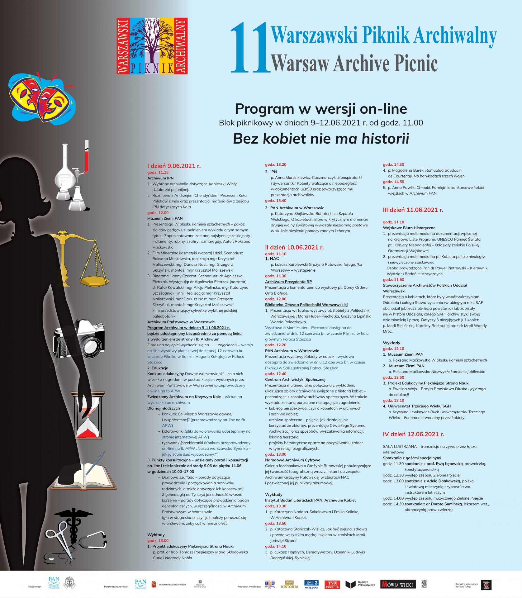 W ramach udziału w wydarzeniu, Archiwum IPN przygotowało trzy filmy, które zostały zaprezentowane w pierwszym dniu pikniku, 9 czerwca 2021 (środa):