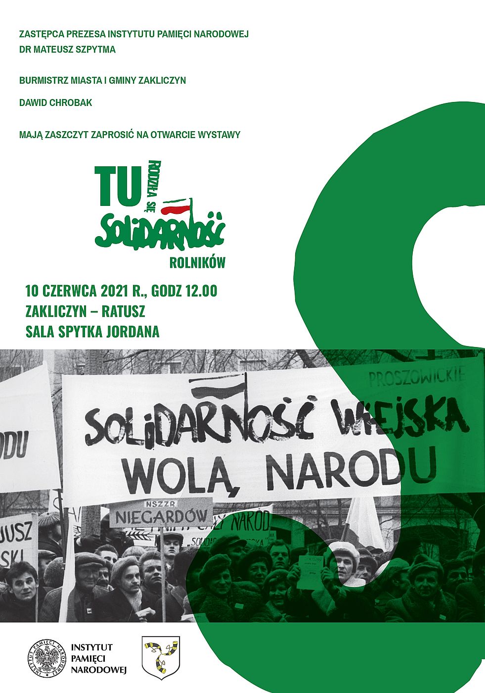 W sali Spytka Jordana w zakliczyńskim Ratuszu zastępca prezesa IPN dr Mateusz Szpytma, dyrektor Oddziału IPN w Krakowie dr hab. Filip Musiał i burmistrz Zakliczyna Dawid Chrobak otworzyli wystawę „TU rodziła się Solidarność rolników”. Podczas uroczystości prócz gospodarza oraz zastępcy prezesa IPN, głos zabrali, przewodniczący NSZZ rolników „Solidarność” Małopolska, Wojciech Włodarczyk oraz Norbert Kaczmarczyk, poseł na Sejm RP. Spotkanie zakończył wykład dr. Pawła Glugli, który przybliżył postać Stanisława Chrobaka, polskiego rolnika, polityka i samorządowca, działacza opozycji antykomunistycznej w okresie PRL, senatora I kadencji.