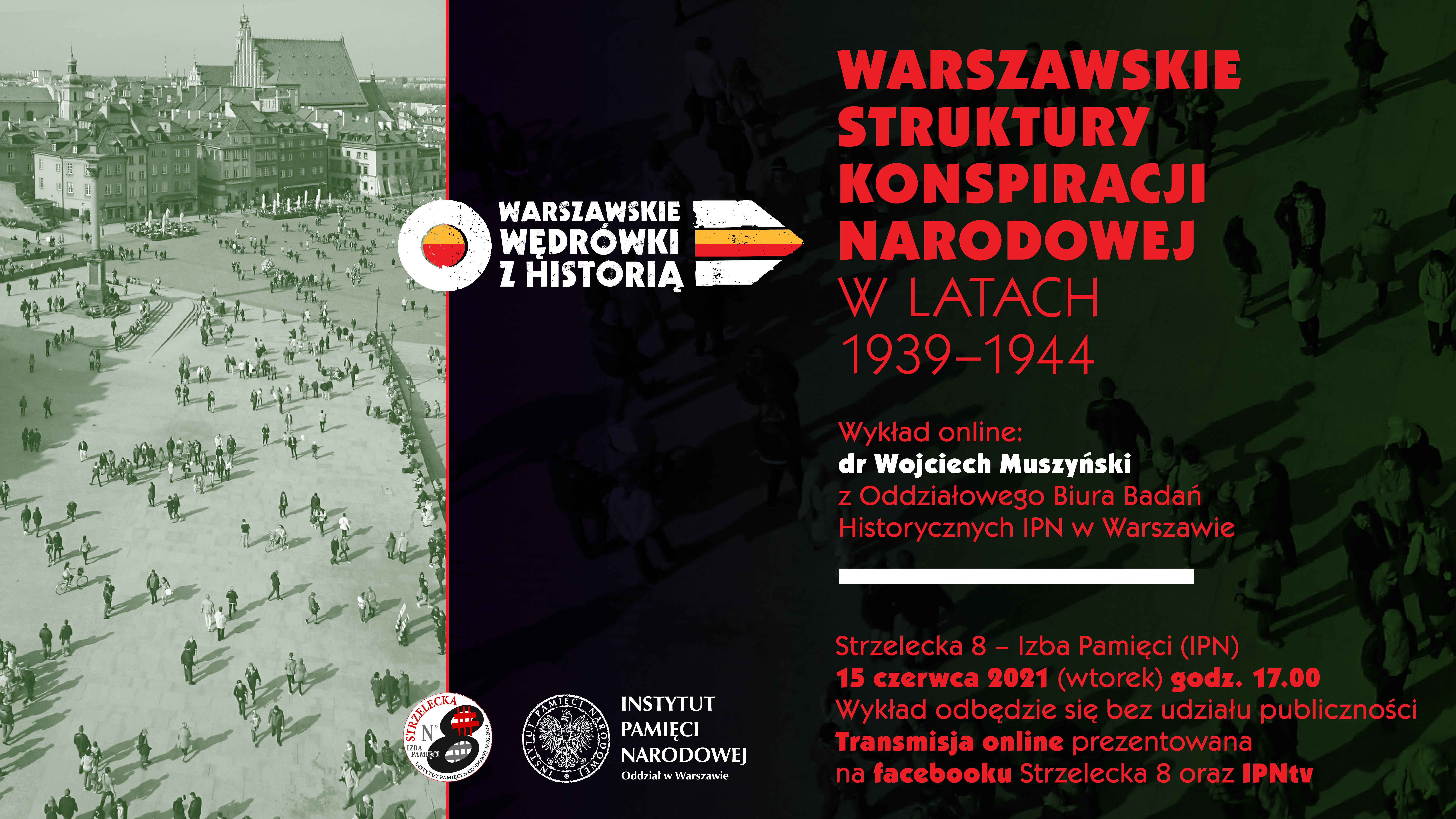 We wtorek 15 czerwca 2021 dr Wojciech Muszyński z Oddziałowego Biura Badań Historycznych IPN w Warszawie zaprezentuje temat „Warszawskie struktury konspiracji narodowej w latach 1939-1944”.