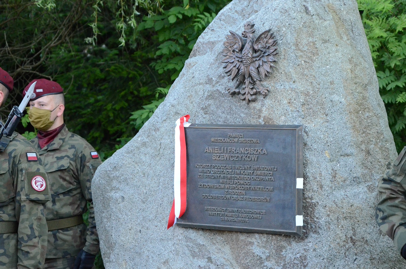 Dr Mateusz Szpytma wspomniał w swoim przemówieniu bohaterstwo upamiętnionych Anieli i Franciszka Szewczyków, mieszkańców miejscowości, którzy podczas II wojny światowej nieśli pomoc żydowskim współobywatelom z rodzin Goldbergów oraz Federgrünów. W imieniu współorganizatora uroczystości, wojewody małopolskiego, głos zabrała Monika Kolasa. Dr hab. Filip Musiał przeczytał skierowany do uczestników wydarzenia list od Jana Józefa Kasprzyka, szefa Urzędu ds. Kombatantów i Osób Represjonowanych. Przemówił również poseł Władysław Kurowski. Sekretarz gminy Raciechowice Halina Adamska-Jędrzejczyk odczytała list ambasadora Izraela w Polsce. Krótki rys historyczny przedstawił rodzinnie związany z Szewczykami Kazimierz Łapczyński, inicjator postawienia obelisku.