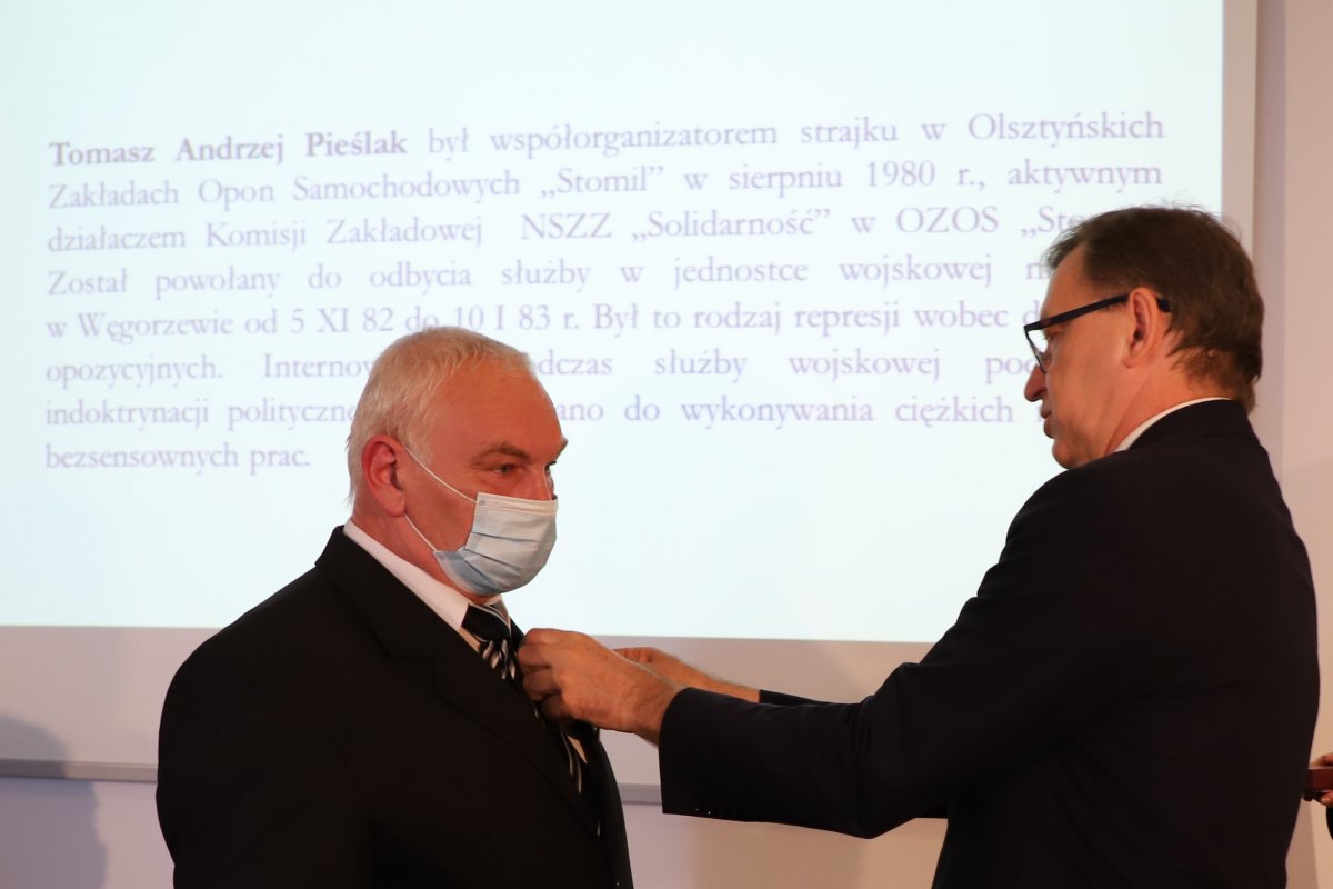 Tomasz Andrzej Pieślak był współorganizatorem strajku w Olsztyńskich Zakładach Opon Samochodowych „Stomil” w sierpniu 1980 r., aktywnym działaczem Komisji Zakładowej NSZZ „Solidarność” w OZOS „Stomil”. Został powołany do odbycia służby w jednostce wojskowej nr 2568 w Węgorzewie od 5 XI 82 do 10 I 83 r. Był to rodzaj represji wobec działaczy opozycyjnych. Internowanych podczas służby wojskowej poddawano indoktrynacji politycznej oraz zmuszano do wykonywania ciężkich i często bezsensownych prac.