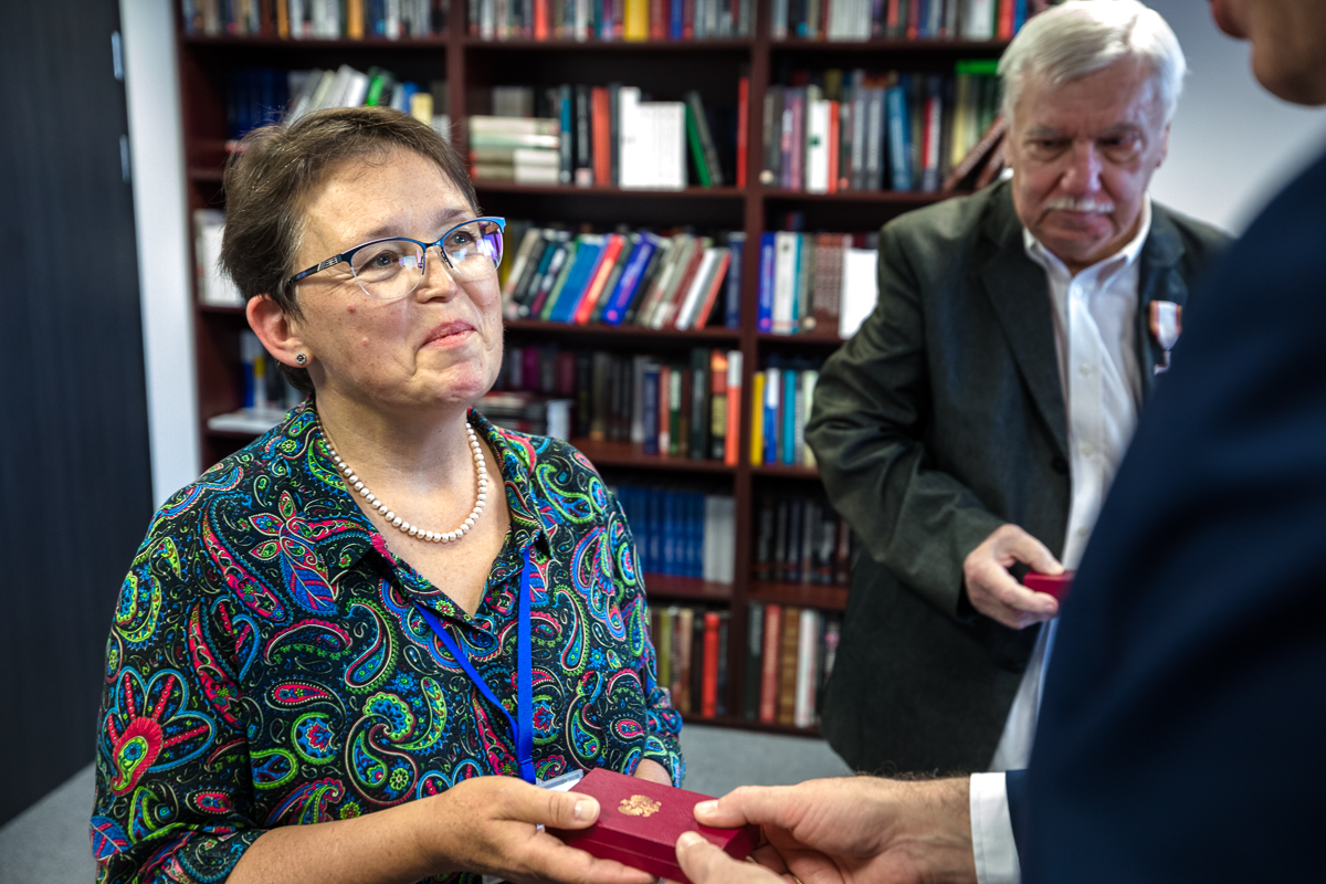 Krzyż Wolności i Solidarności przyznany pośmiertnie Wojciechowi Ziembińskiemu odebrała jego córka Teresa Krynicka – Warszawa, 8 lipca 2021. Fot. Sławek Kasper (IPN)