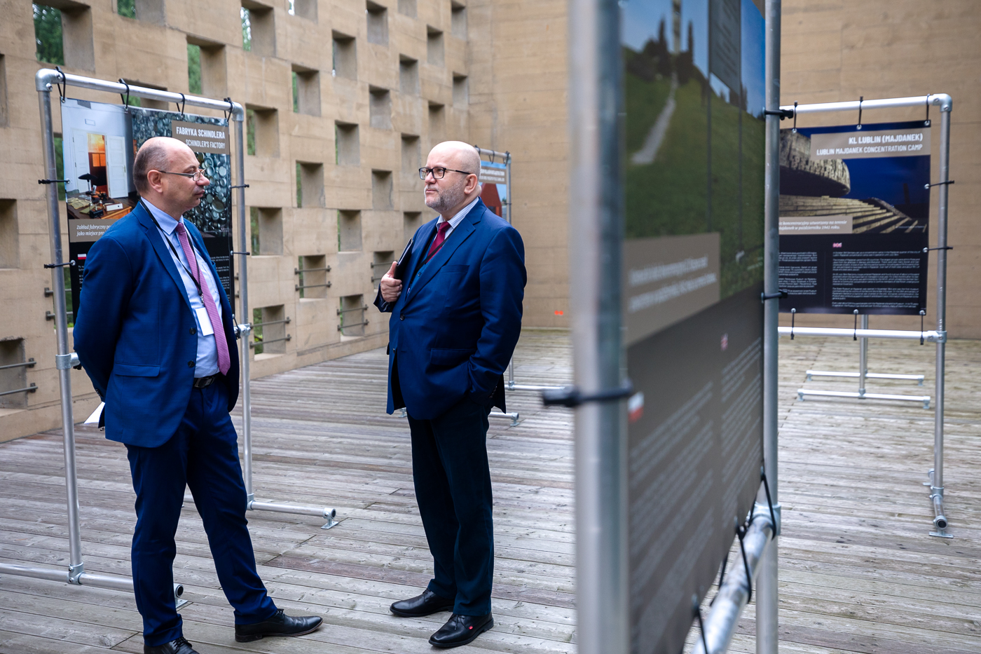 Sebastian Sporek, syn laureata nagrody Janusza Sporka i dr Marek Szymaniak, przedstawiciel nominowanego do nagrody Muzeum II Wojny Światowej – Sulejówek, 28 sierpnia 2021. Fot. Sławek Kasper (IPN)