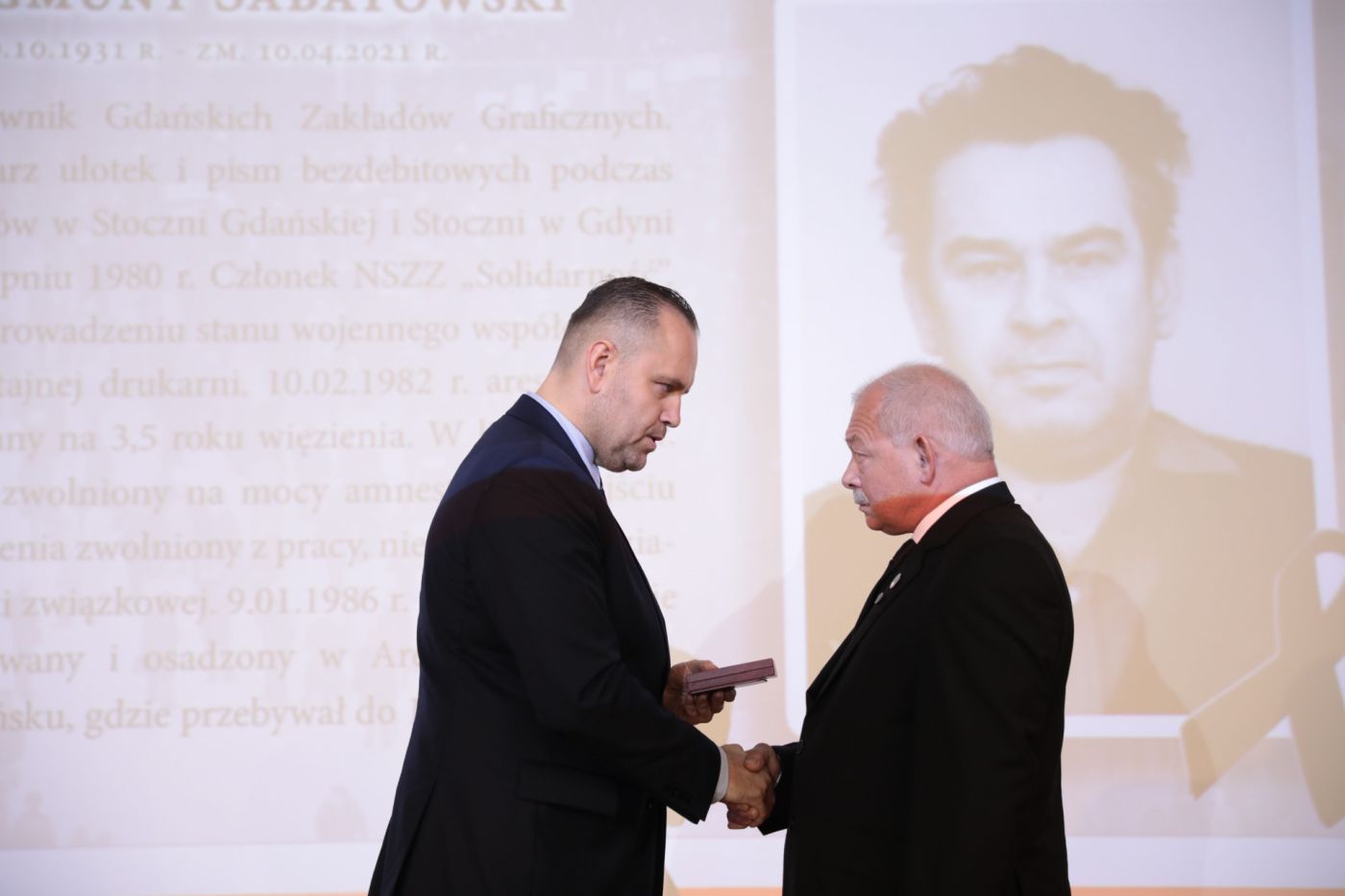 W imieniu Prezydenta RP Andrzeja Dudy dr Nawrocki wręczył bohaterom polskiej drogi do wolności odznaczenia państwowe: Krzyż Kawalerski Orderu Odrodzenia Polski oraz Krzyże Wolności i Solidarności.