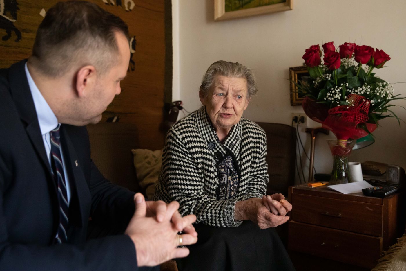 Spotkanie prezesa IPN dr. Karola Nawrockiego z Ewą Przesmycką, siostrzenicą Henryka Wieliczki ps. Lufa – 24 września 2021. Fot. Mikołaj Bujak (IPN)