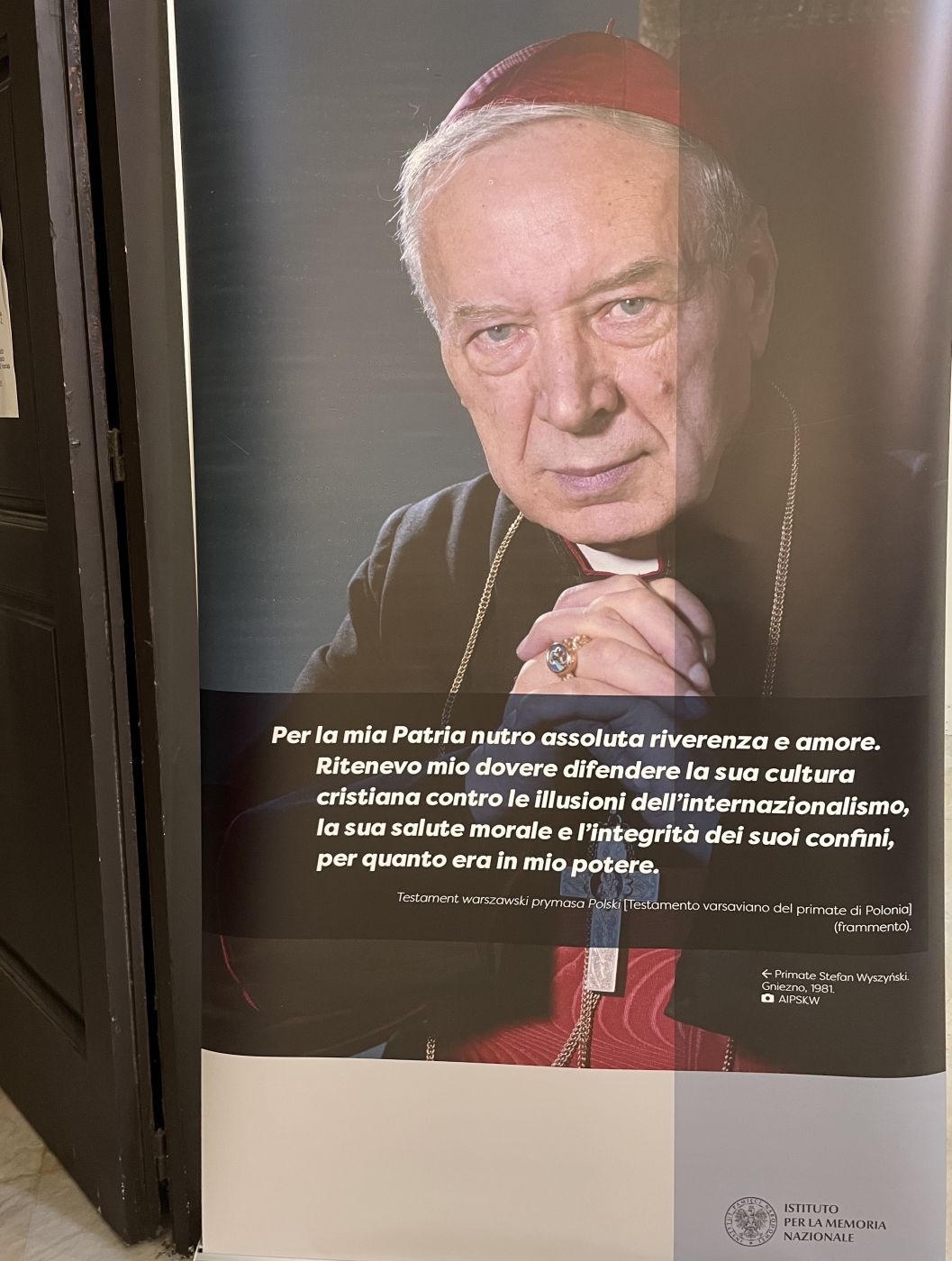 Odczytany został list prezesa Instytutu Pamięci Narodowej dr. Karola Nawrockiego, który w swoim przesłaniu podkreślił znaczenie postaci prymasa Wyszyńskiego w historii Polski i przekazał organizatorowi, którym jest Apulijskie Stowarzyszenie Polsko-Włoskie, podziękowania za możliwości prezentacji wystawy Instytutu w Bari. Współpraca IPN z tym stowarzyszeniem trwa od 2018 r.