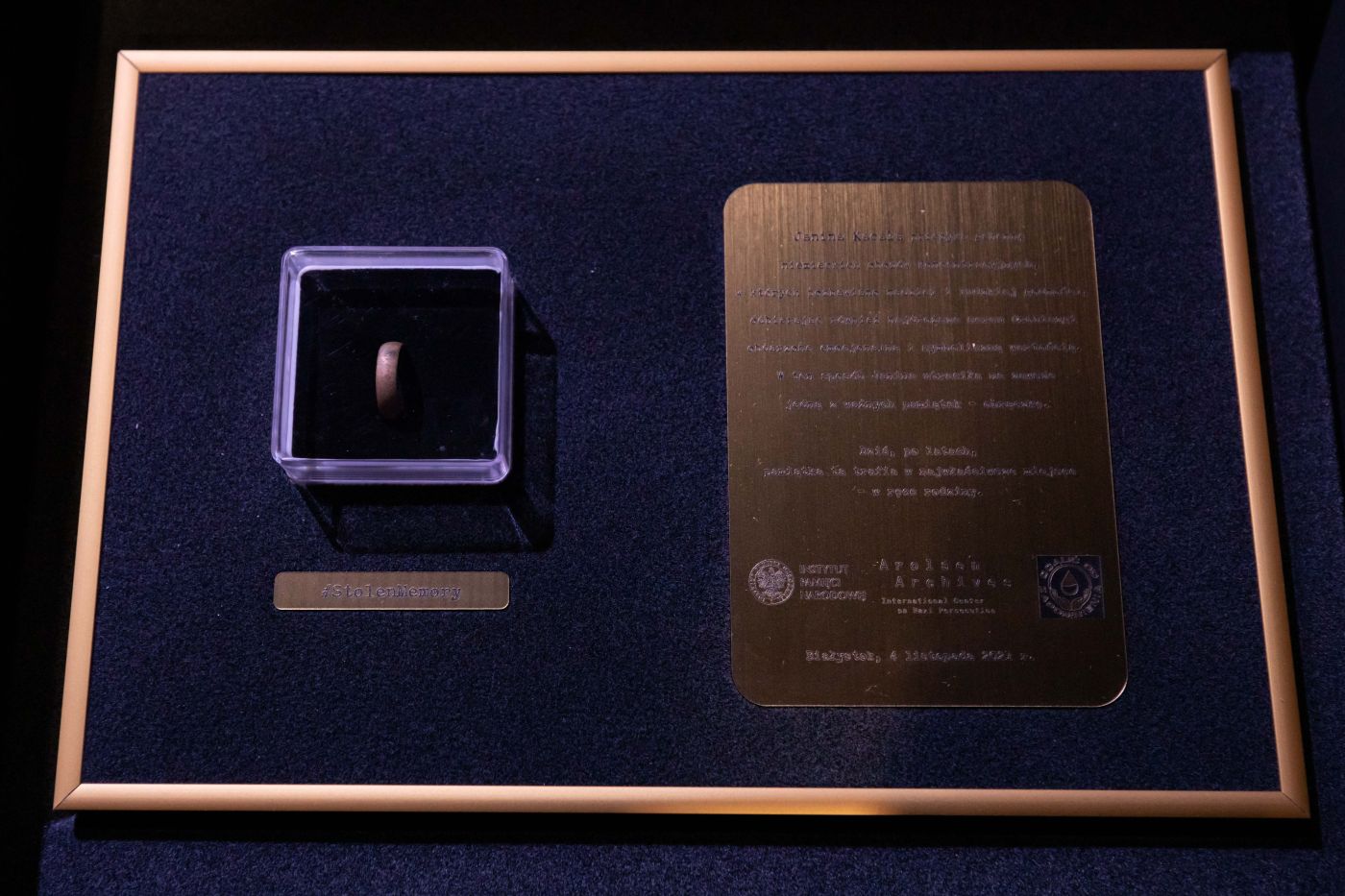 Obrączka Janiny Kacały, przekazana rodzinie podczas uroczystości w Białymstoku – 4 listopada 2021. Fot. Mikołaj Bujak (IPN)