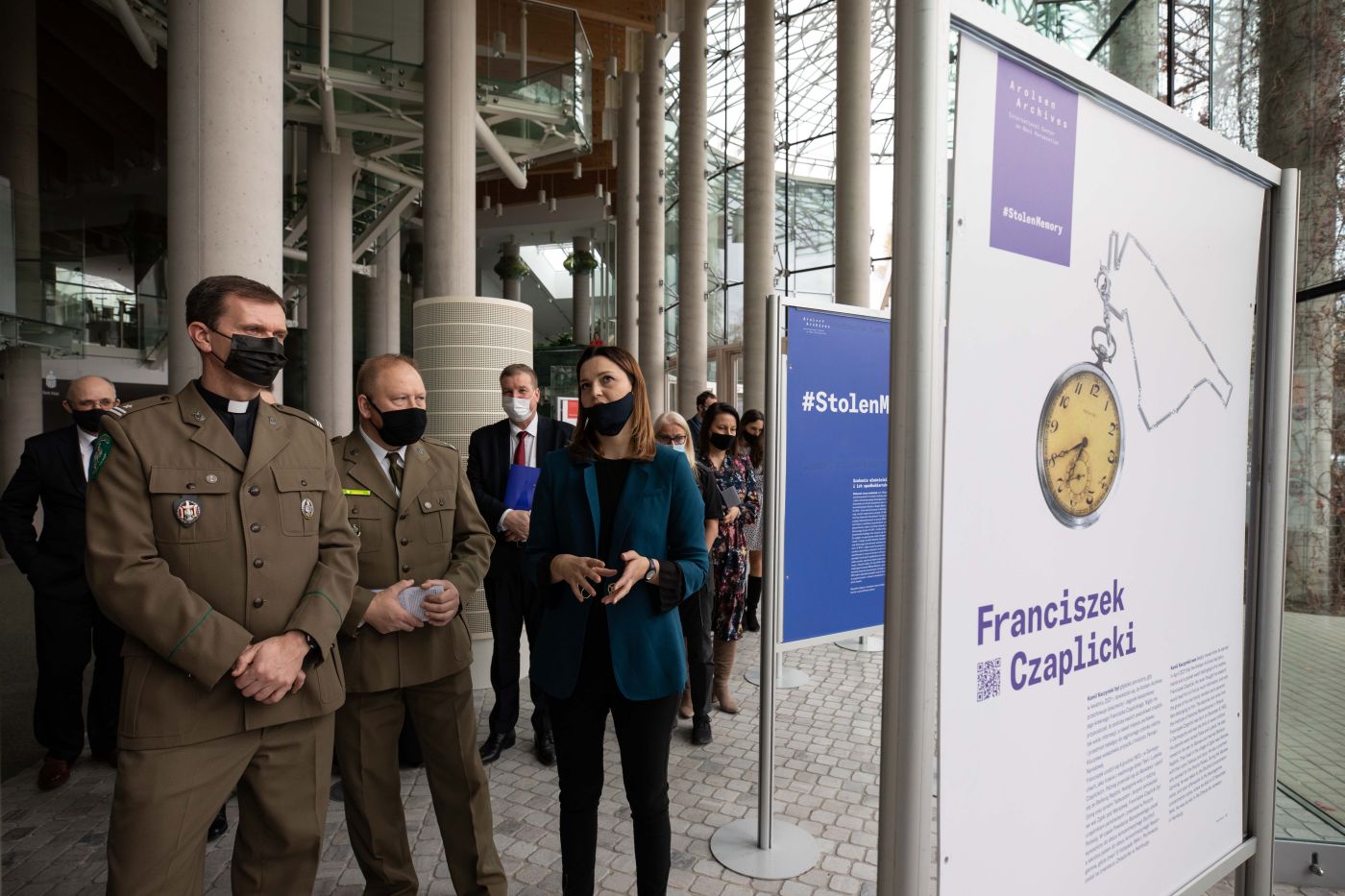 W ramach uroczystości prezes IPN otworzył wystawę „#StolenMemory – Skradziona Pamięć”, która jest częścią kampanii realizowanej przez Arolsen Archives w Bad Arolsen i wspieranej przez Instytut Pamięci Narodowej.