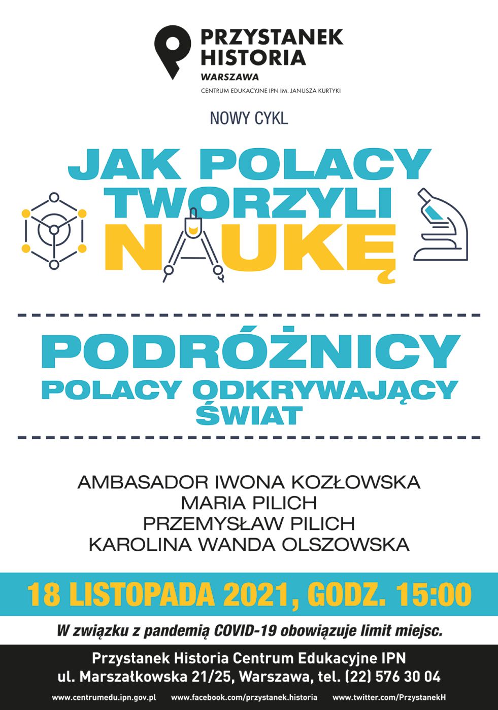 Zapraszamy na retransmisję spotkania „Podróżnicy – Polacy odkrywający świat” z cyklu „Jak Polacy tworzyli naukę”, które odbyło się 18 listopada 2021 roku w Centrum Edukacyjnym IPN im. Janusza Kurtyki „Przystanek Historia”w Warszawie.
