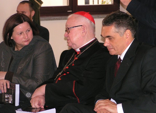 Ksiądz kardynał Henryk Gulbinowicz oraz przewodniczaca Rady Miejskiej Barbara Zdrojewska i prezes IPN Janusz Kurtyka -