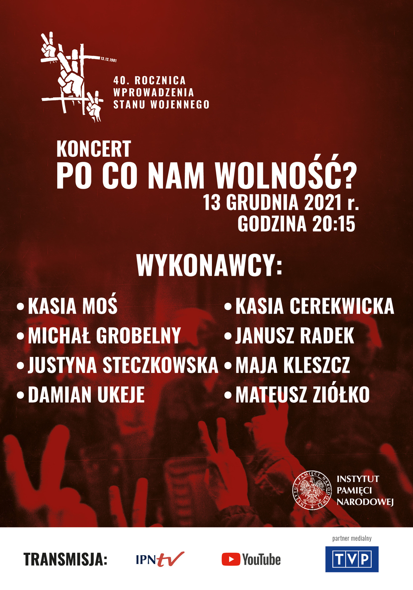 Bezpośrednia transmisja z koncertu odbyła się w TVP1, na kanale IPNtv oraz na profilu głównym IPN na FB.