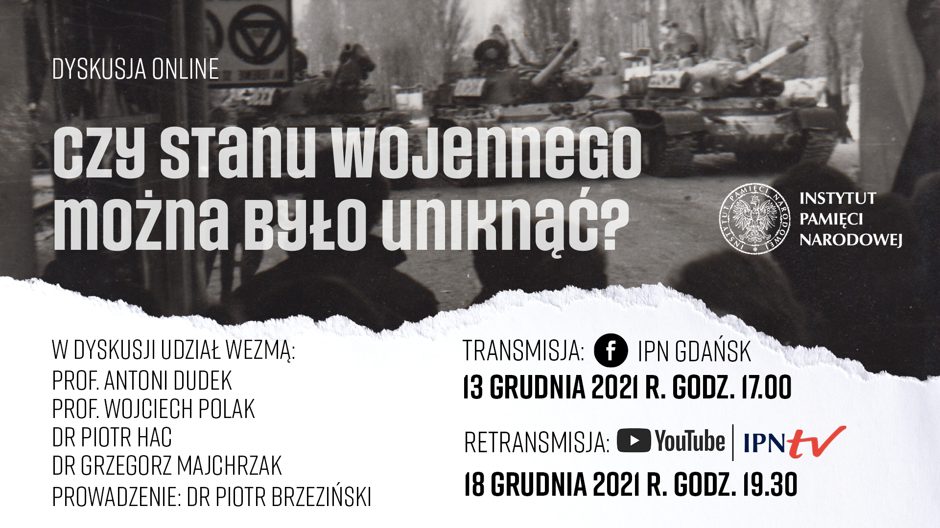 Transmisja na Facebooku IPN Gdańsk 13 grudnia o godz. 17.00.