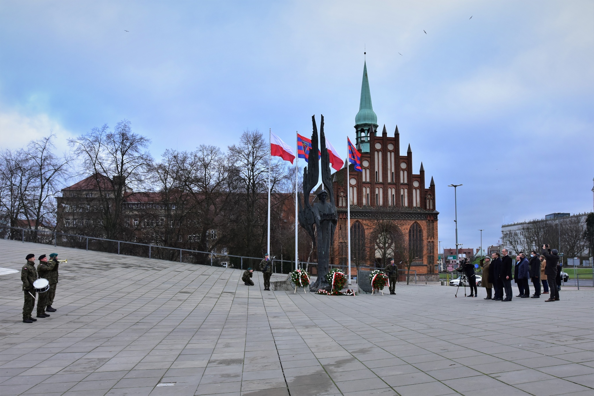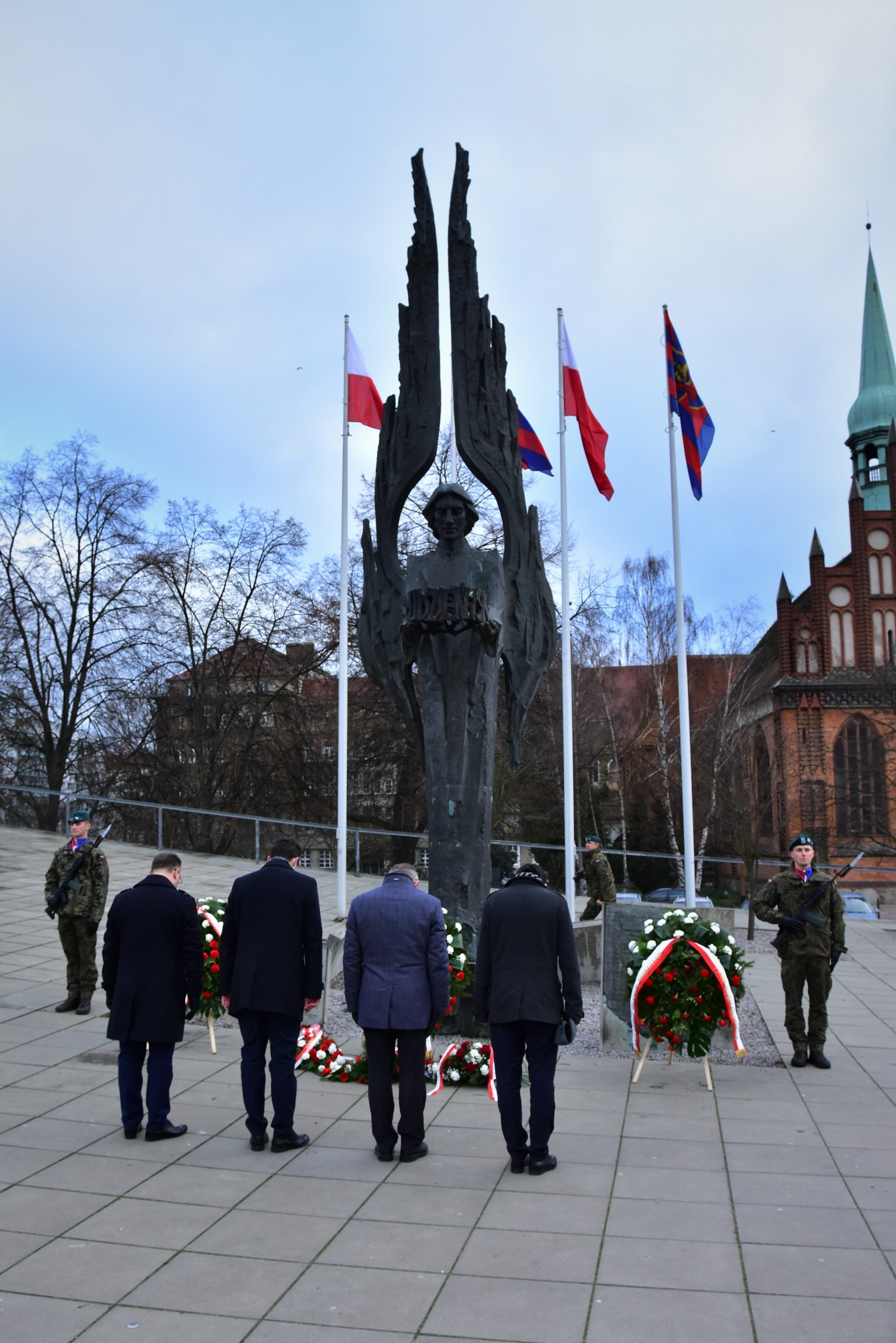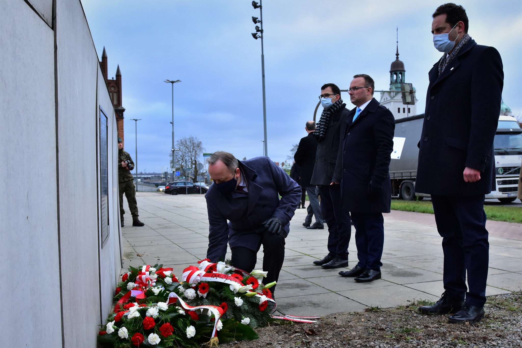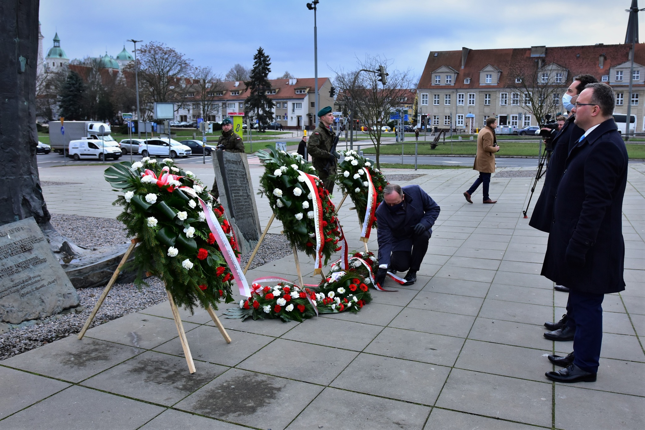 Kwiaty złożyliśmy zarówno przy bramie Stoczni Szczecińskiej, jak i przy Aniele Wolności na placu Solidarności. Plac Solidarności to miejsce, gdzie w polskim Szczecinie wielokrotnie zbierali się Polacy, stając naprzeciw socjalistycznej władzy, upominając się o wolność i godność.