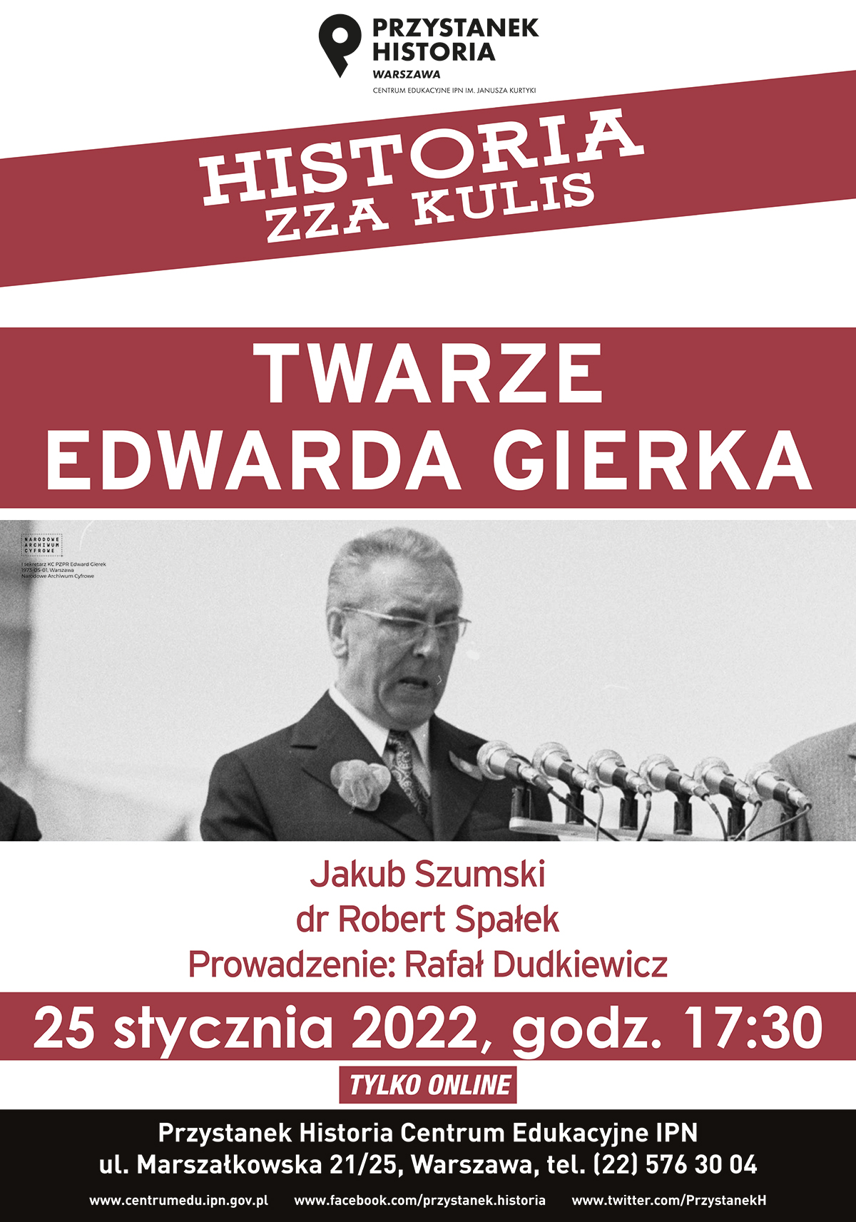 Centralny Przystanek Historia zaprasza do obejrzenia dyskusji online „Twarze Edwarda Gierka” z cyklu „Historia zza kulis”. Jakim człowiekiem był Edward Gierek? Jak historycy oceniają politykę i skutki decyzji podjętych przez „dobrego gospodarza”? Dlaczego wiele osób wciąż wspomina dekadę Gierka z nostalgią?