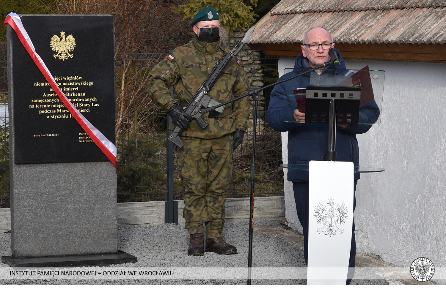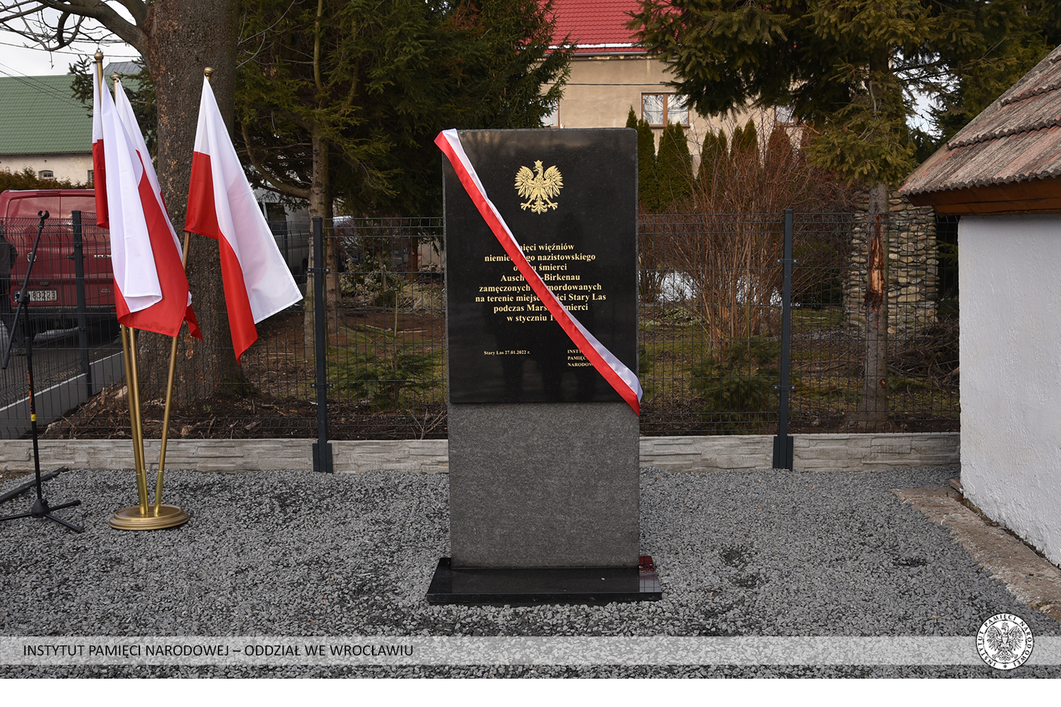 W centrum wsi Stary Las (gm. Głuchołazy) na Śląsku Opolskim w czwartek 27 stycznia 2022 r. odsłonięto pomnik poświęcony ofiarom Marszu Śmierci ze stycznia 1945 r.