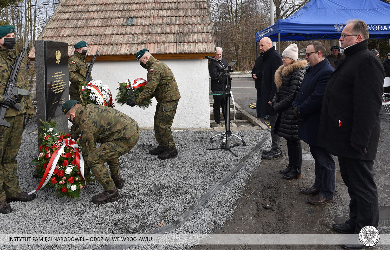 Uroczystego odsłonięcia tablicy dokonali Sławomir Kłosowski, wojewoda opolski, Paweł Rozdżestwieński, dyrektor Oddziału IPN we Wrocławiu, Wojciech Trębacz, naczelnik Oddziałowego Biura Upamiętniania Walk i Męczeństwa IPN we Wrocławiu i gospodarz miejsca – Edward Szupryczyński, burmistrz gminy Głuchołazy.