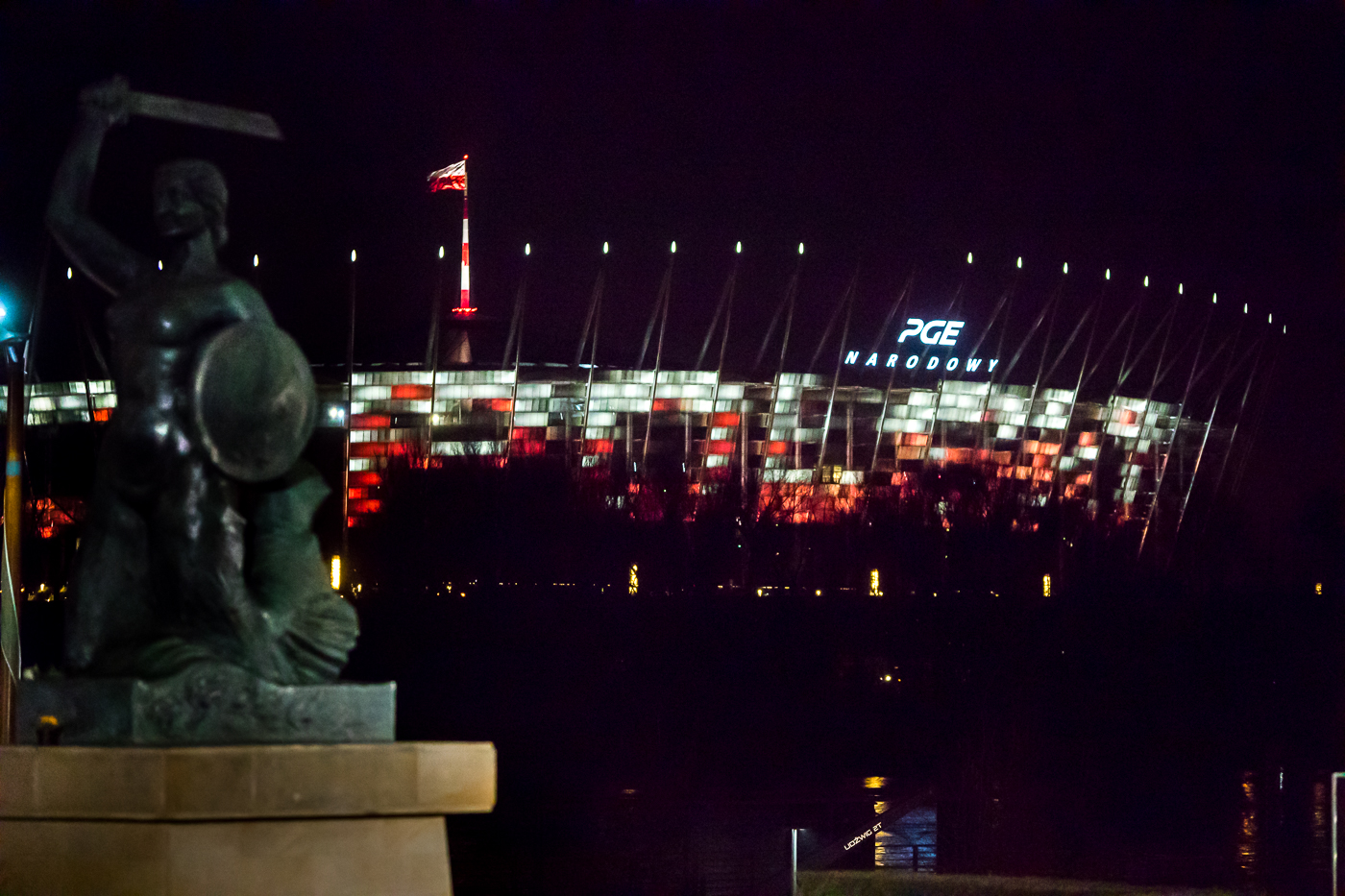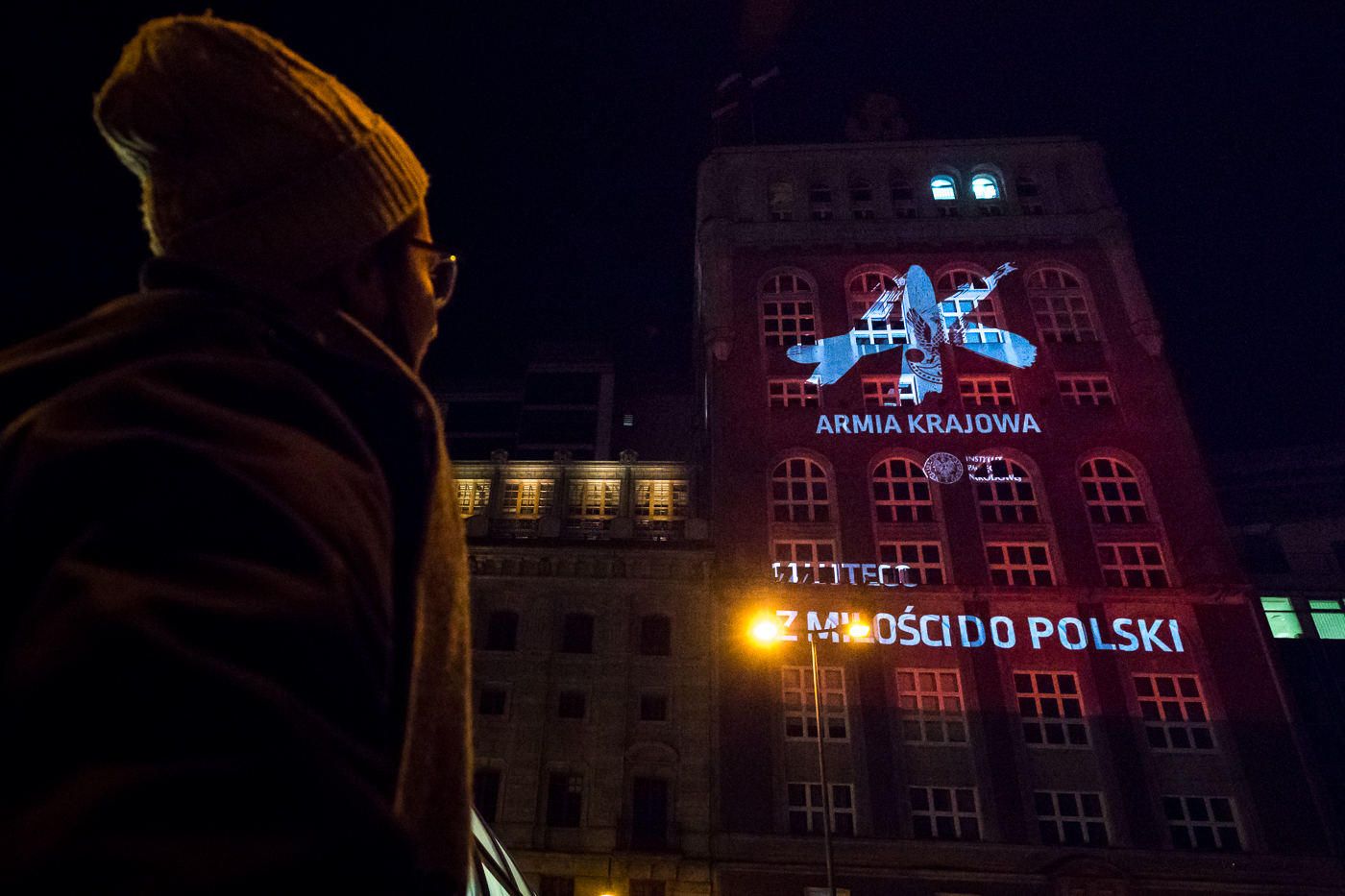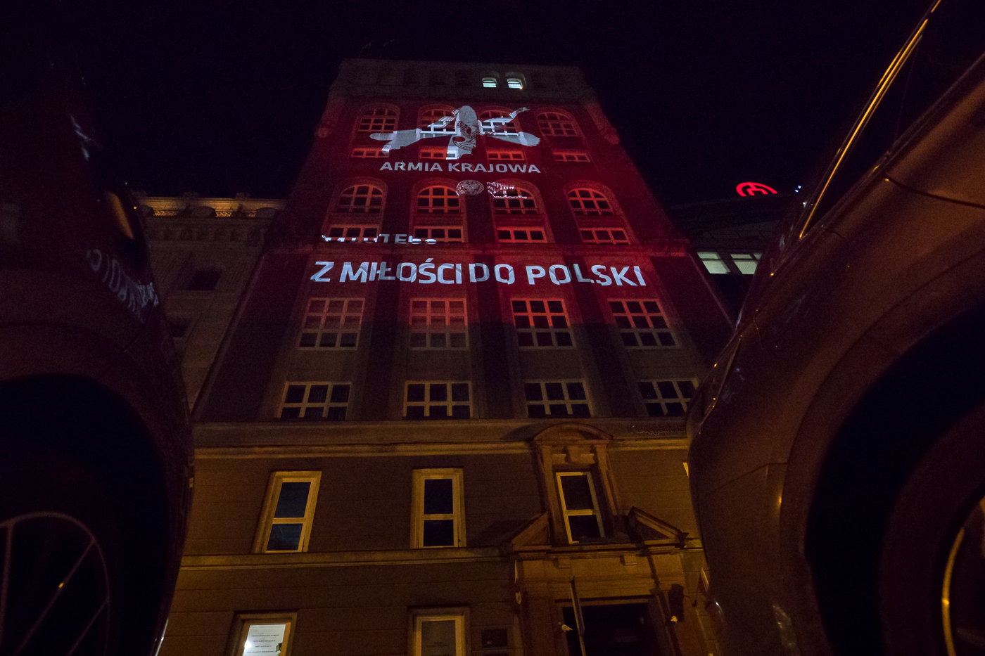 Natomiast od godziny 17.00 do północy na elewacji Stadionu Narodowego widniało hasło „AK – z miłości do Polski". Kampania jest wynikiem współpracy IPN z PGE Narodowym. Elewacja stadionu to jeden z najbardziej rozpoznawalnych elementów panoramy Warszawy, prezentowane są na niej napisy, które między innymi mają na celu przypominać o ważnych dla Polaków wydarzeniach.