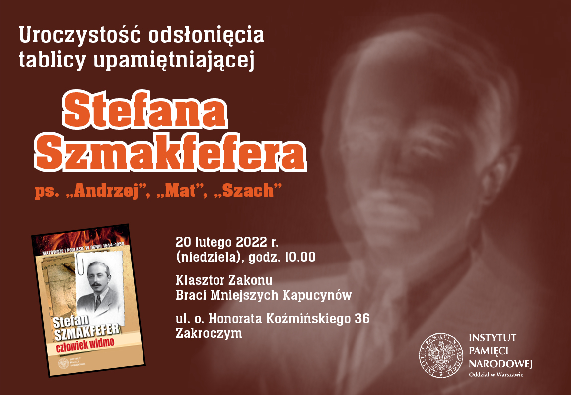 Mszą św. w kościele pw. św. Wawrzyńca w Klasztorze Zakonu Braci Mniejszych Kapucynów przy ul. o. Honorata Koźmińskiego 36 w Zakroczymiu rozpoczęła się uroczystość odsłonięcia tablicy upamiętniającej Stefana Szmakfefera, odznaczonego pośmiertnie przez Prezydenta RP Andrzeja Dudę Krzyżem Komandorskim Orderu Odrodzenia Polski oraz awansowanego pośmiertnie decyzją Ministra Obrony Narodowej na stopień podpułkownika.