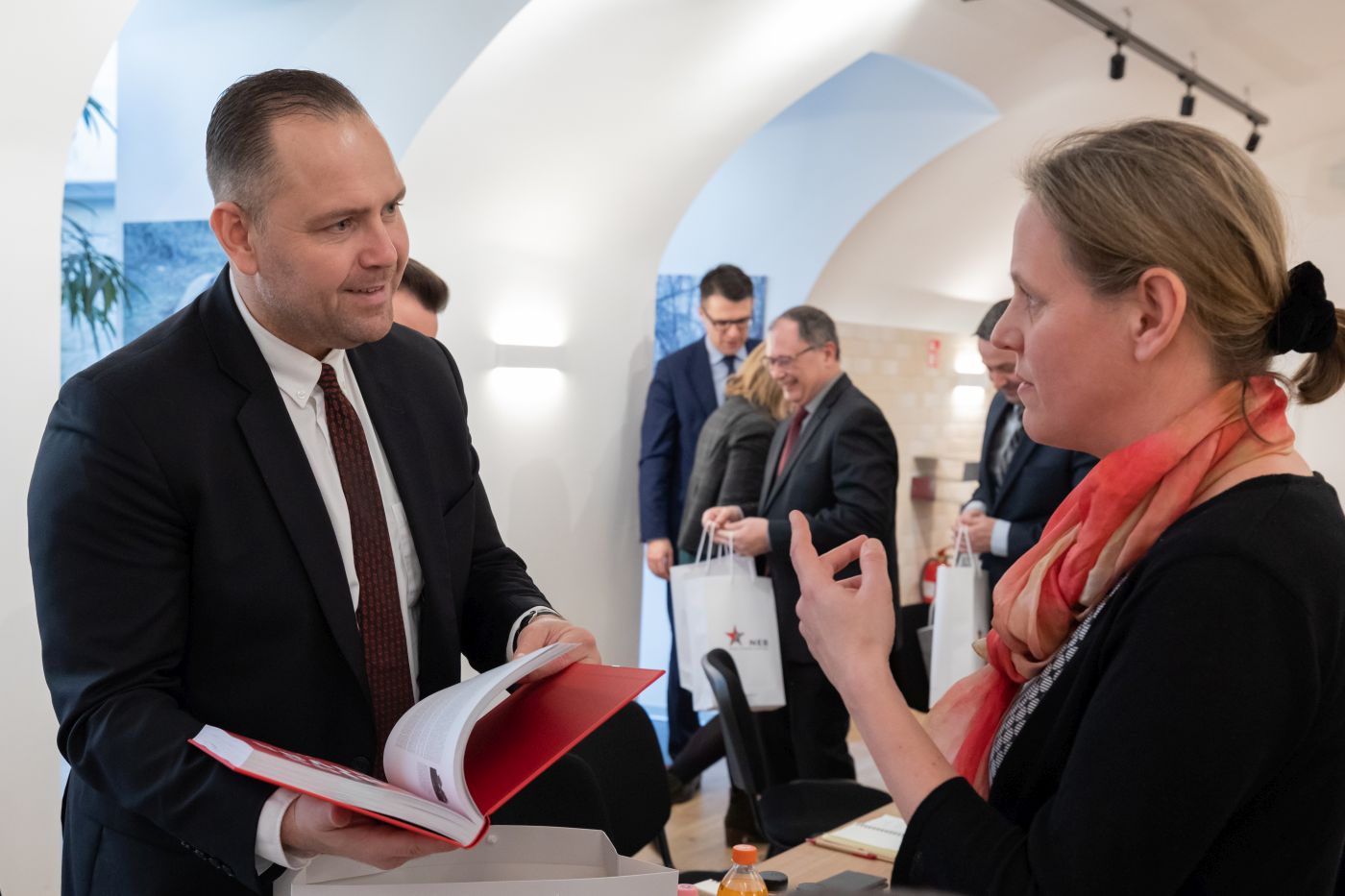 Tego samego dnia prezes IPN spotkał się z dr hab. Réką Földváryné Kiss, przewodniczącą węgierskiego Komitetu Pamięci Narodowej (Nemzeti Emlékezet Bizottság – NEB), by omówić dalszą współpracę naukową, archiwalną, edukacyjną, komemoratywną oraz bilateralne projekty międzynarodowe.