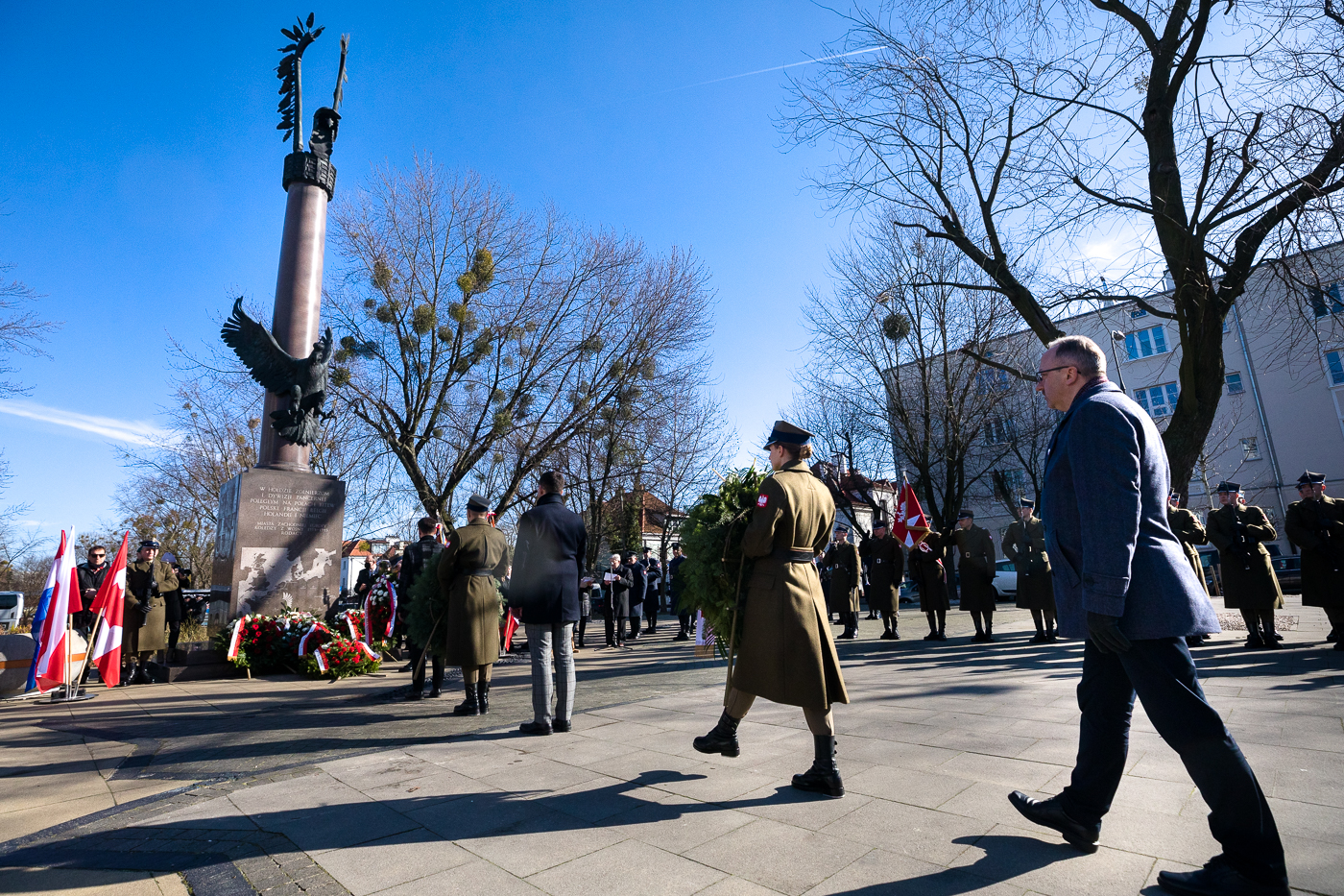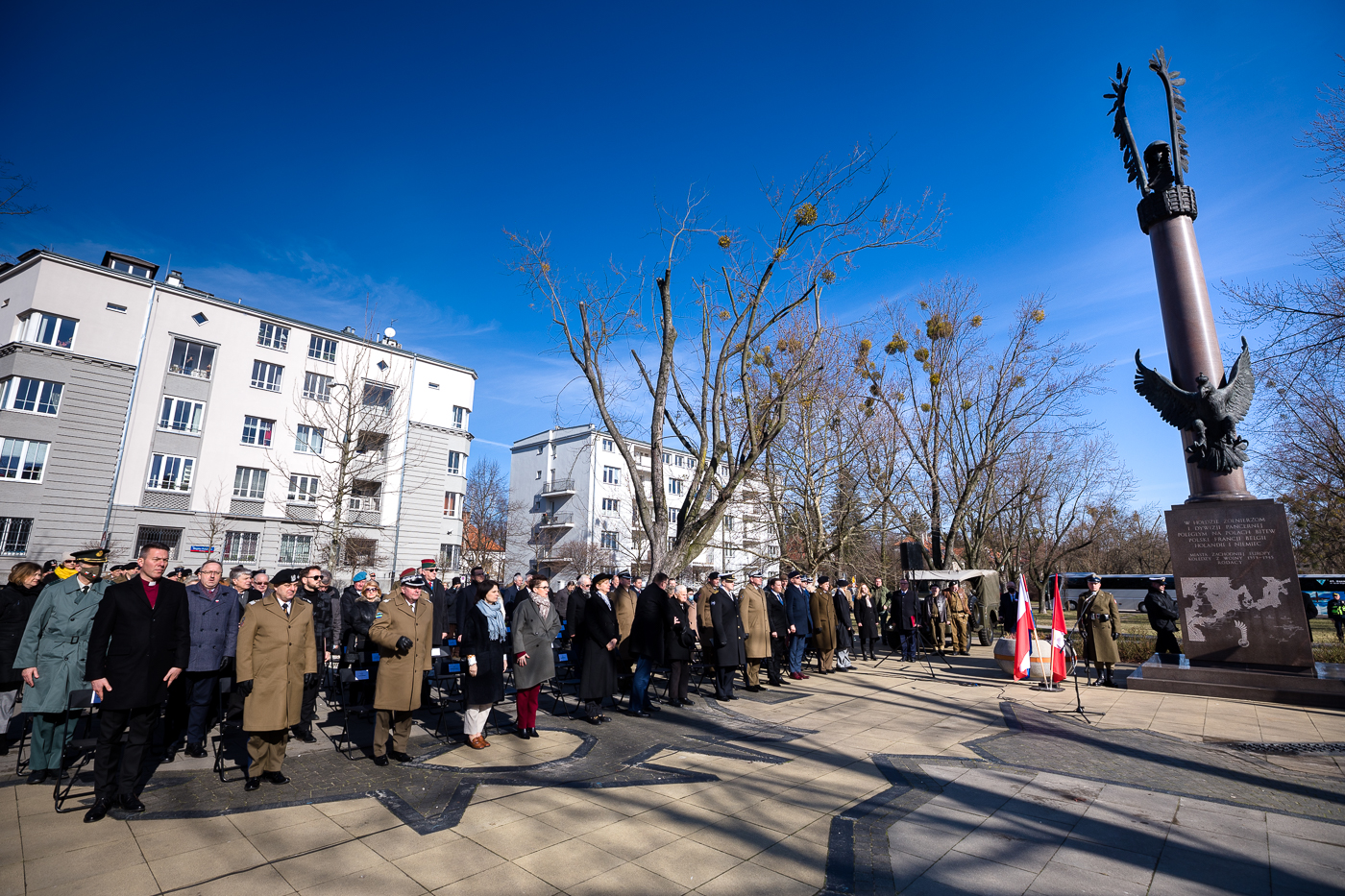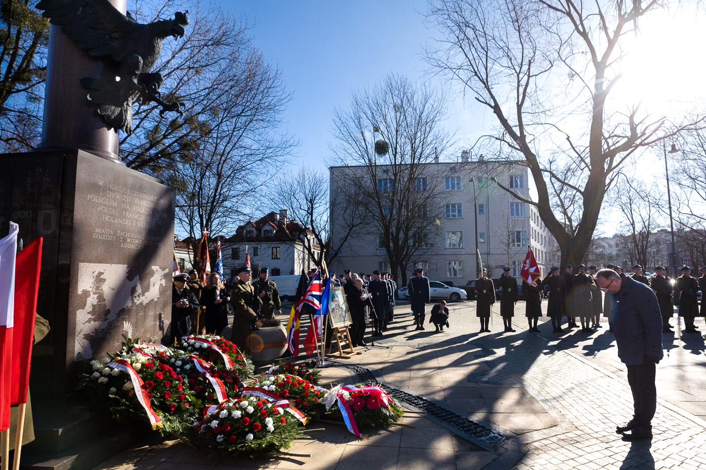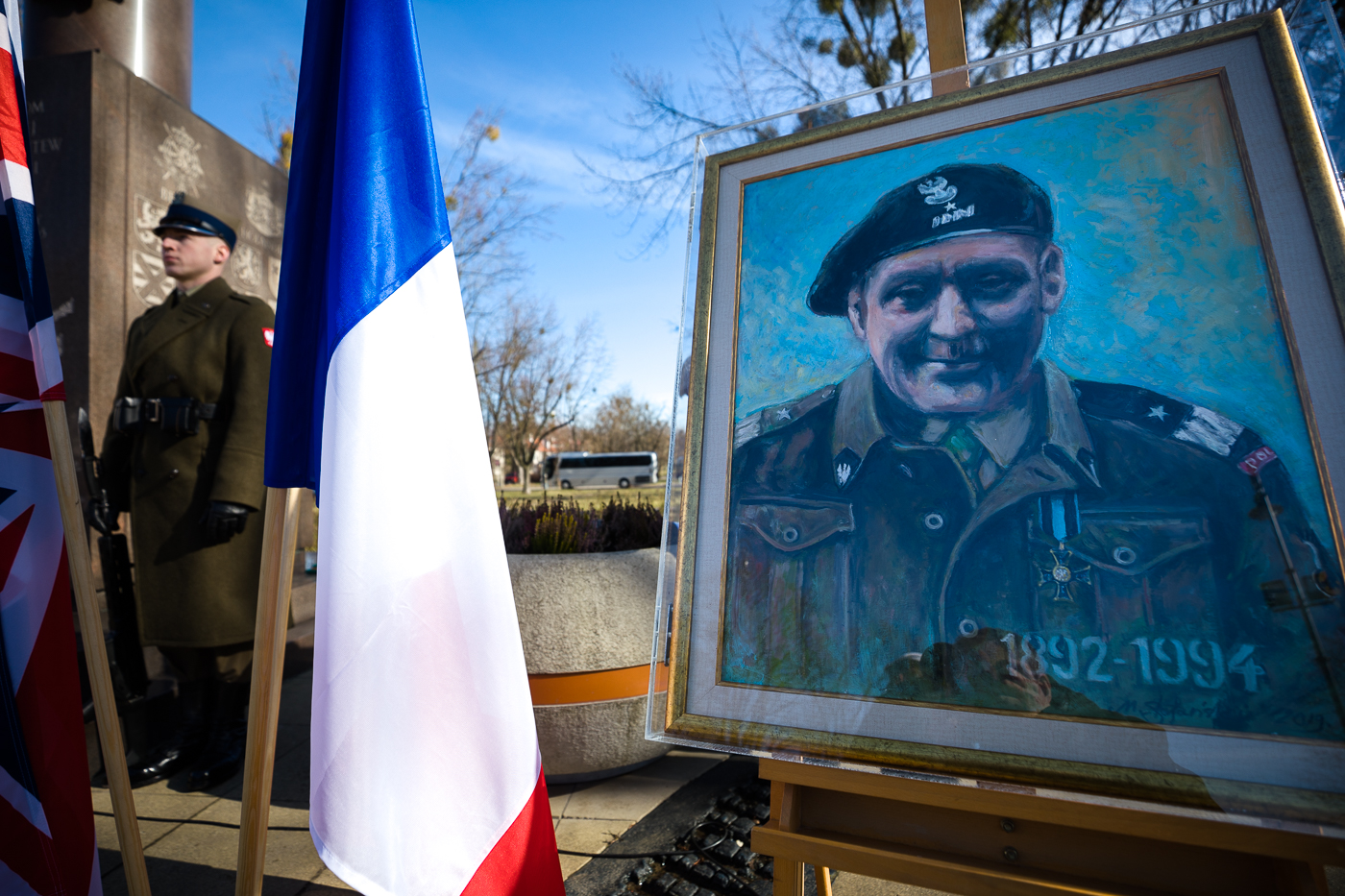 Dalsze uroczystości odbyły się przed pomnikiem 1. Polskiej Dywizji Pancernej przy Placu Inwalidów, gdzie został odegrany hymn RP, a następnie odtworzono archiwalne nagranie gen. bryg. Stanisława Maczka. Po jego zakończeniu szef Urzędu do Spraw Kombatantów i Osób Represjonowanych Jan Józef Kasprzyk przekazał rodzinie kaprala Leonarda Kozikowskiego – podoficera 10. Pułku Strzelców Konnych, poległego bohaterską śmiercią w okolicy Soignolles (Francja) podczas Operacji Overlord – Krzyż Walecznych, który został mu nadany przez Naczelnego Wodza pośmiertnie w 1944 roku.