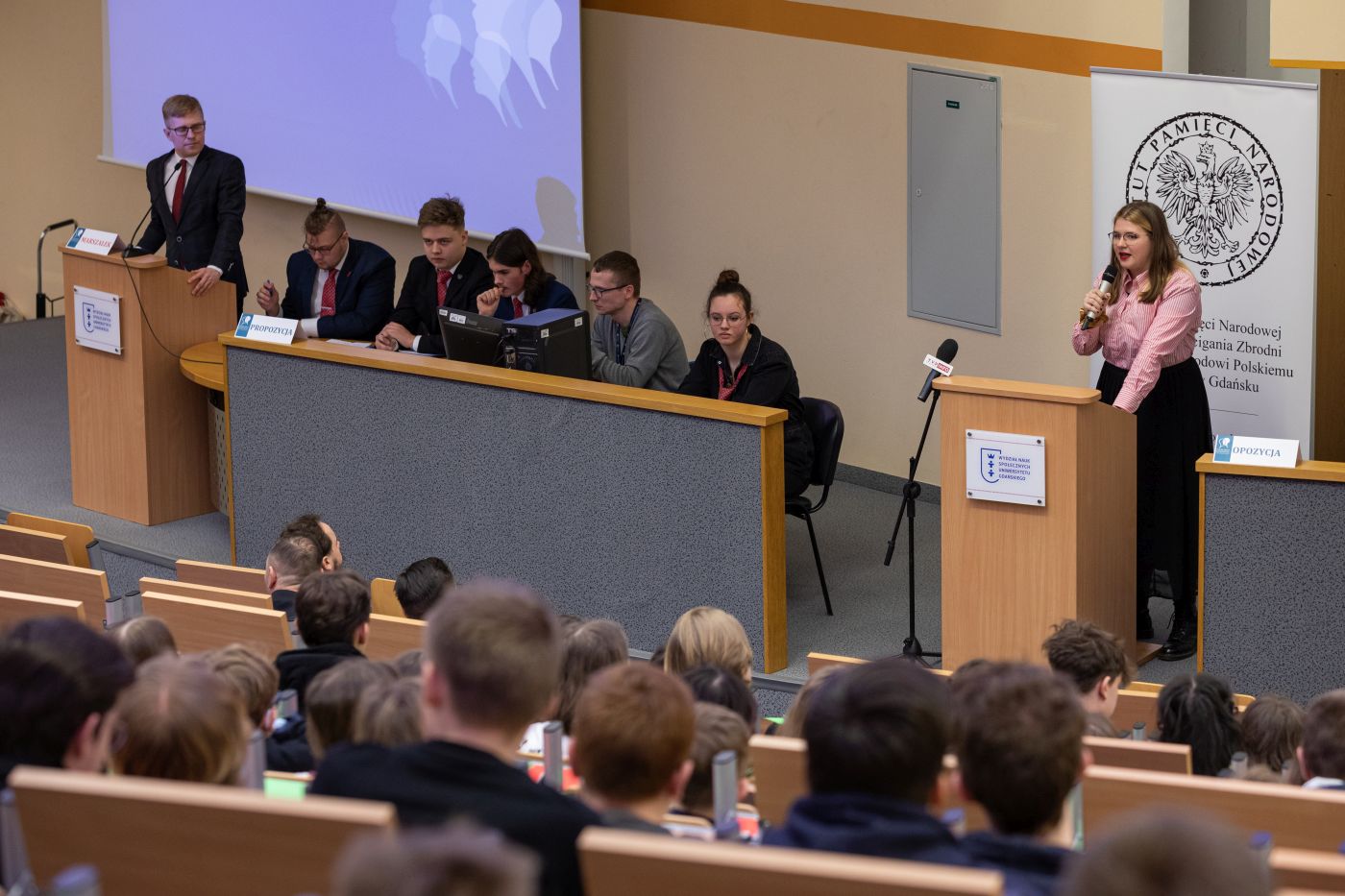 Debata historyczna licealistów „Polscy żołnierze po zakończeniu II wojny światowej posiadali moralny obowiązek kontynuowania walki” – Gdańsk, 4 marca 2022. Fot. Mikołaj Bujak (IPN)