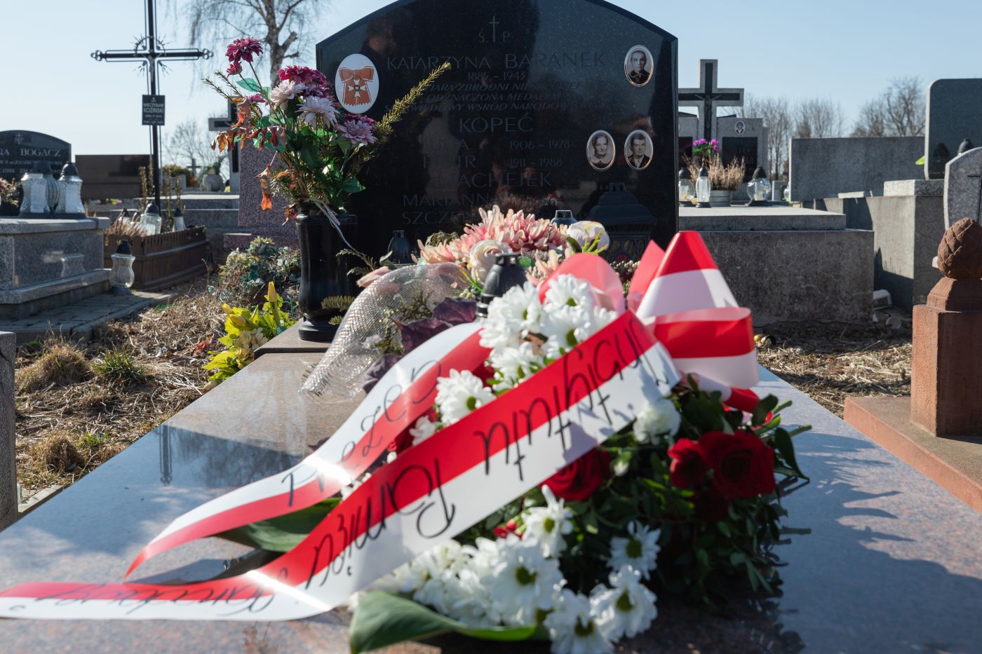 Złożenie kwiatów na grobach rodziny Baranków – Miechów, 24 marca 2022. Fot Mikołaj Bujak (IPN)