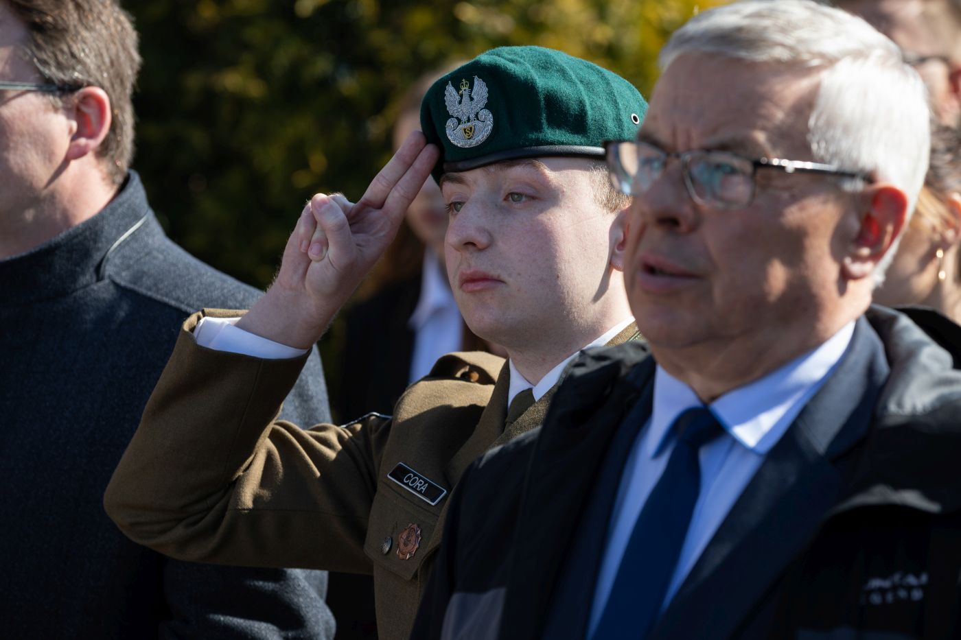 Adam Czarnecki, siostrzeniec Łucji Baranek. Odsłonięcie obelisku upamiętniającego rodzinę Baranków – Miechów, 24 marca 2022. Fot. Mikołaj Bujak (IPN)