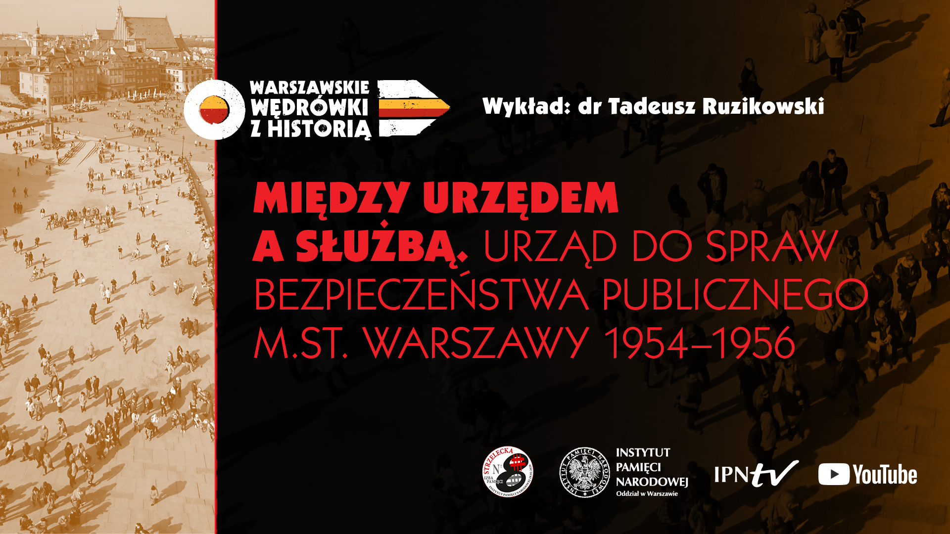 „Między urzędem a służbą. Urząd do Spraw Bezpieczeństwa Publicznego m.st. Warszawy 1954–1956” – wykład dr. Tadeusza Ruzikowskiego w ramach cyklu „Warszawskie wędrówki z historią”.