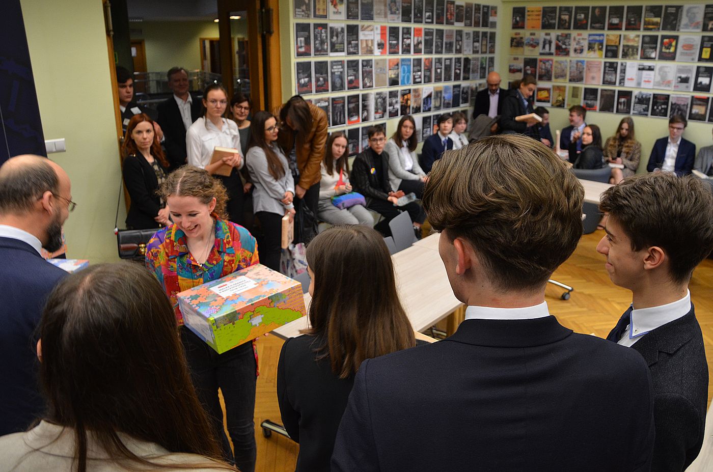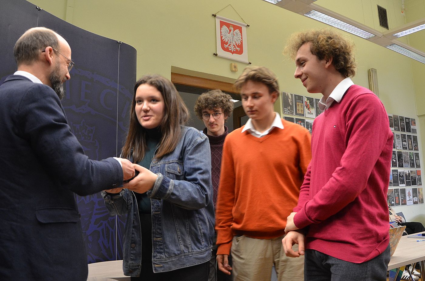 Uczestników turnieju finałowego i ich opiekunów przywitał na „Przystanku Historia” dr Michał Wenklar, zastępca dyrektora Oddziału IPN w Krakowie oraz koordynatorka przedsięwzięcia Katarzyna Łysak. Dr Wenklar wręczy też upominki wszystkim finalistom oraz nagrody zwycięzcom, zdobywcom drugiego miejsca i najlepszemu mówcy.