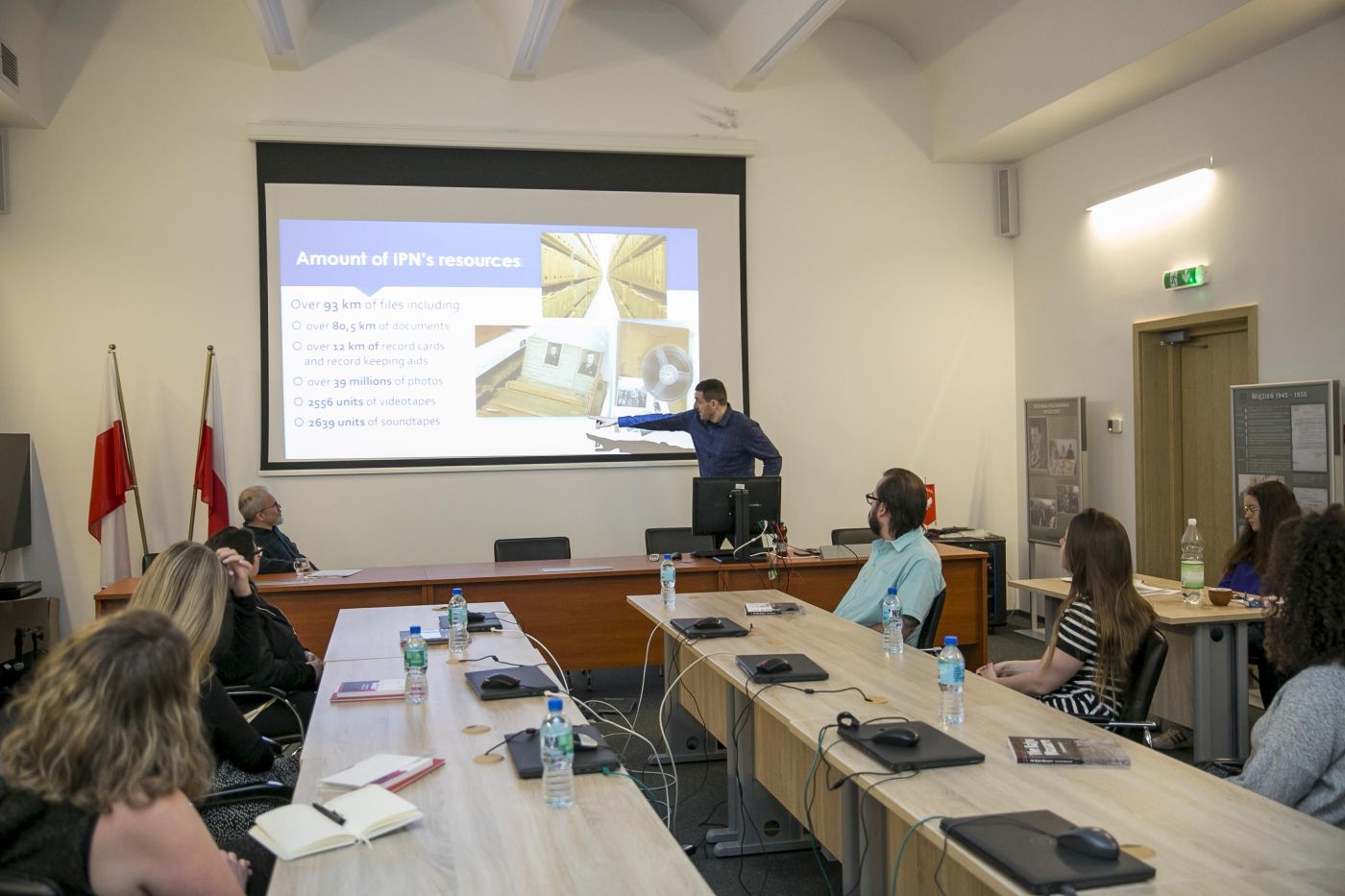 Podczas spotkania archiwiści opowiedzieli o dokumentach zgromadzonych w zbiorach Instytutu, ich specyfice i znaczeniu dla badania najnowszej historii Polski. Pracownicy AIPN omówili także zasady udostępniana dokumentów oraz zaprezentowali elektroniczne narzędzia do prowadzania kwerend – dostępny na stronie Instytutu Inwentarz archiwalny oraz bazę Cyfrowe Archiwum udostępnianą wnioskodawcom w czytelniach pionu archiwalnego.