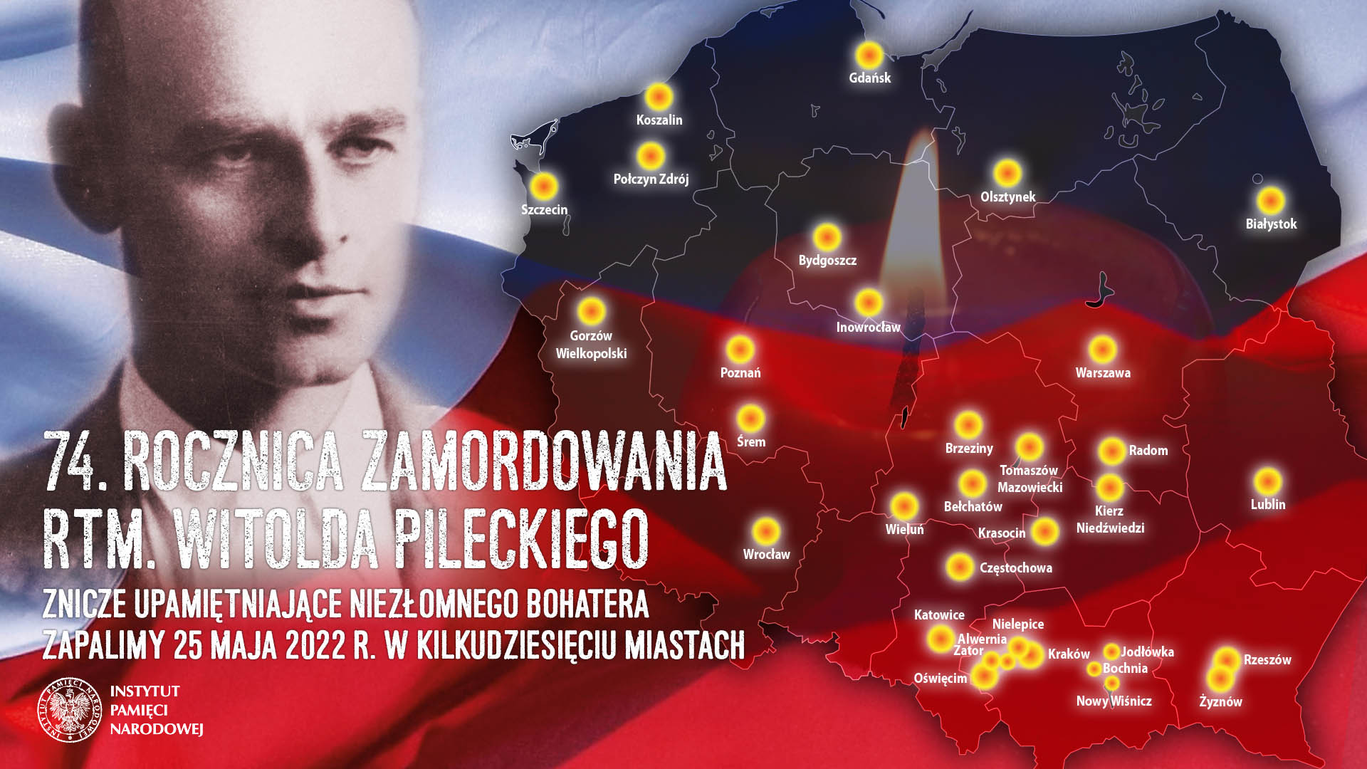 25 maja 2022 r. o godz. 21.30 w wielu miastach i miejscowościach zapłonęły znicze ku czci rtm. Pileckiego.