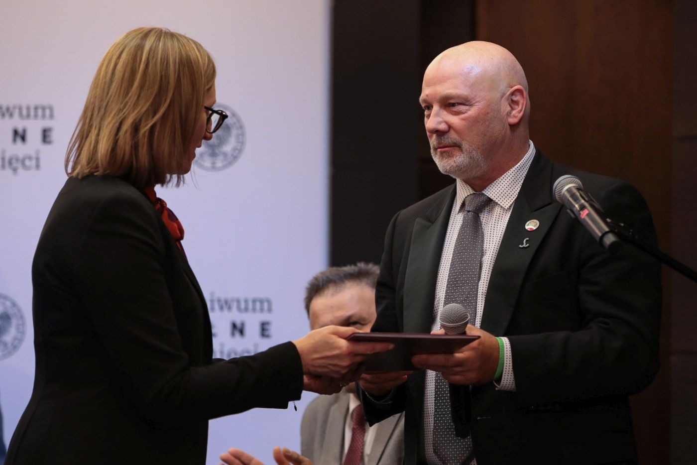 Marzena Kruk, dyrektor Archiwum IPN i Dariusz Olszewski, działacz Solidarności Walczącej, darczyńca. Dyskusja o książce: „Aby każdy okruch historii został uratowany!” – 24 maja 2022. Fot. Mikołaj Bujak (IPN)