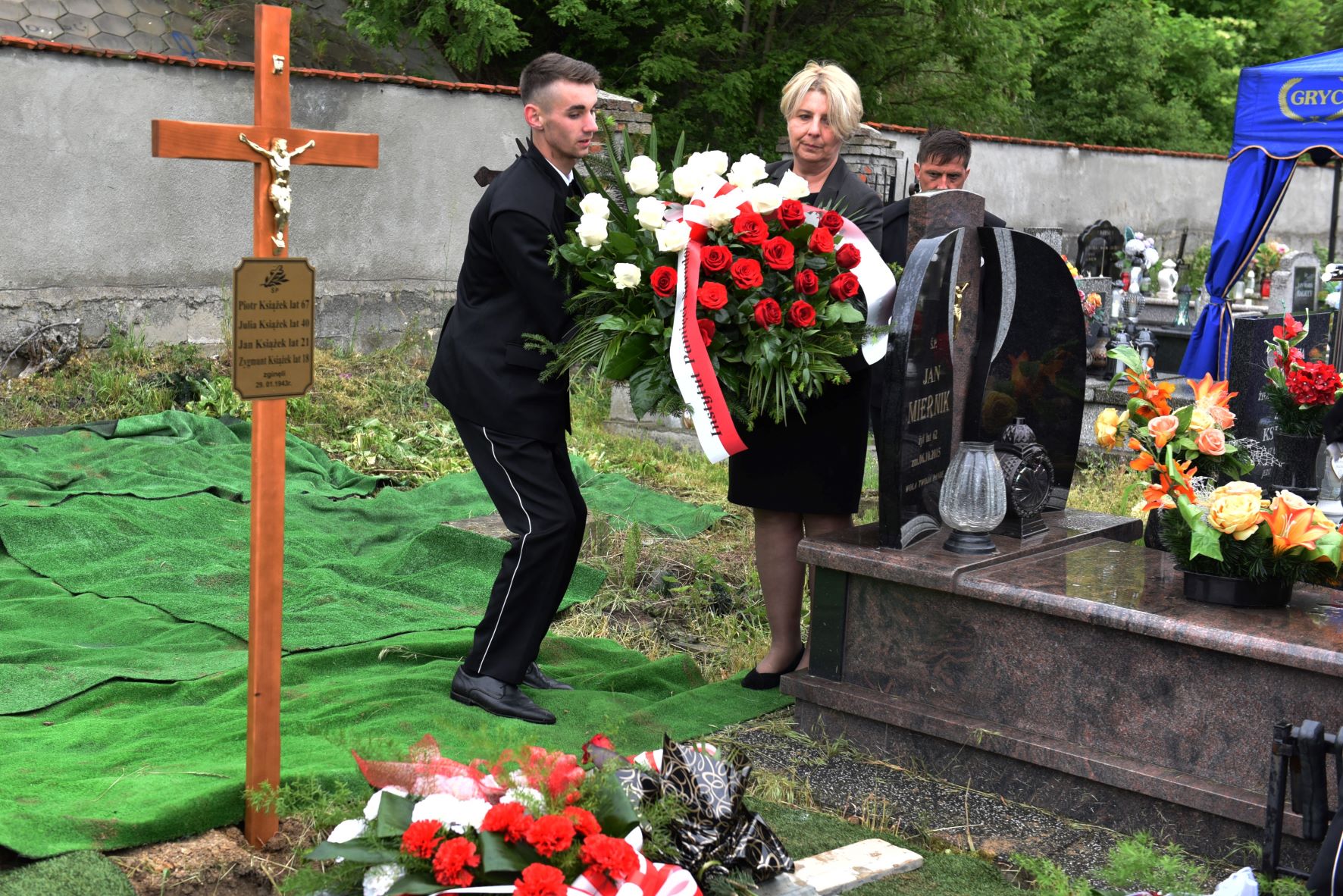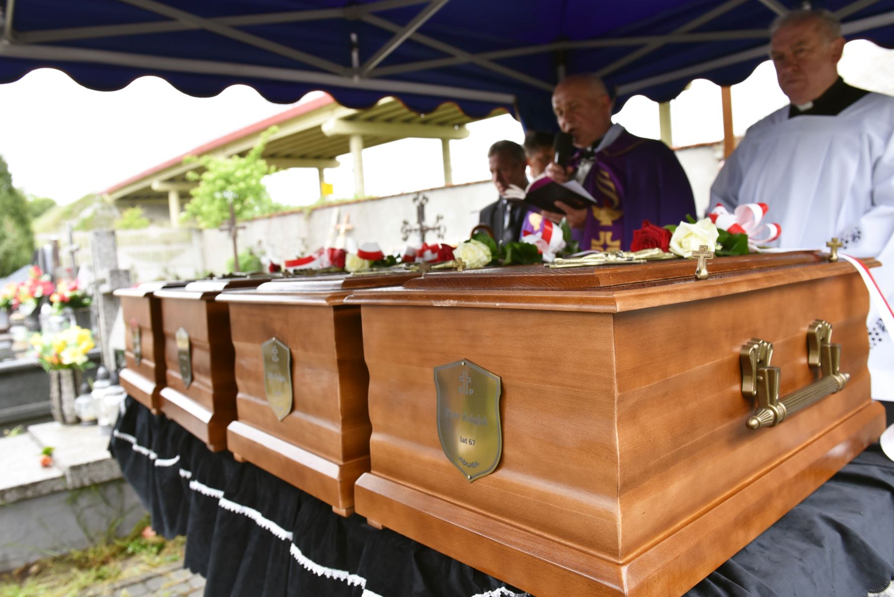 To był pierwszy chrześcijański pogrzeb Piotra i Julii Książków oraz ich synów – Jana i Zygmunta. Msza święta została odprawiona w kościele parafialnym w Kozłowie, następnie szczątki ofiar złożono we wspólnej mogile na cmentarzu parafialnym. Oddział IPN w Krakowie reprezentowała Cecylia Radoń, zastępca dyrektora oraz dr Maciej Korkuć, naczelnik Oddziałowego Biura Upamiętniania Walk i Męczeństwa.