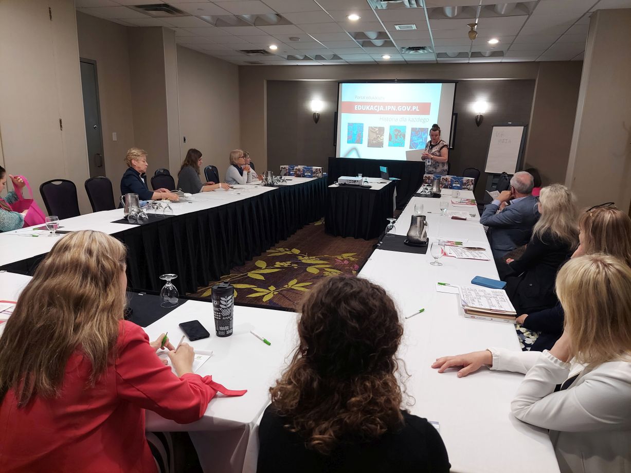 Podczas odbywającego się w Kanadzie, pierwszego po przerwie związanej z epidemią COVID-19, Zjazdu Nauczycieli Polonijnych z Ameryki pracownicy Biura Edukacji Narodowej Instytutu Pamięci Narodowej zaprezentowali ofertę edukacyjną. Ponad stu nauczycieli z dużym zainteresowaniem zapoznawało się również z najnowszymi materiałami edukacyjnymi.