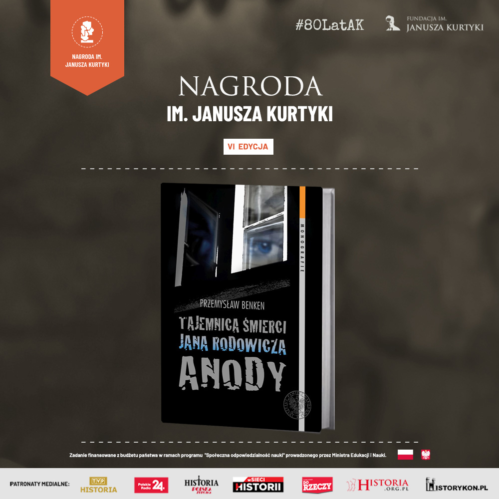W VI edycji Konkursu o Nagrodę im. Janusza Kurtyki, organizowanym przez Fundację im. Janusza Kurtyki w Warszawie, zwyciężyła książka dr. Przemysława Benkena „Tajemnica śmierci Jana Rodowicza Anody”.