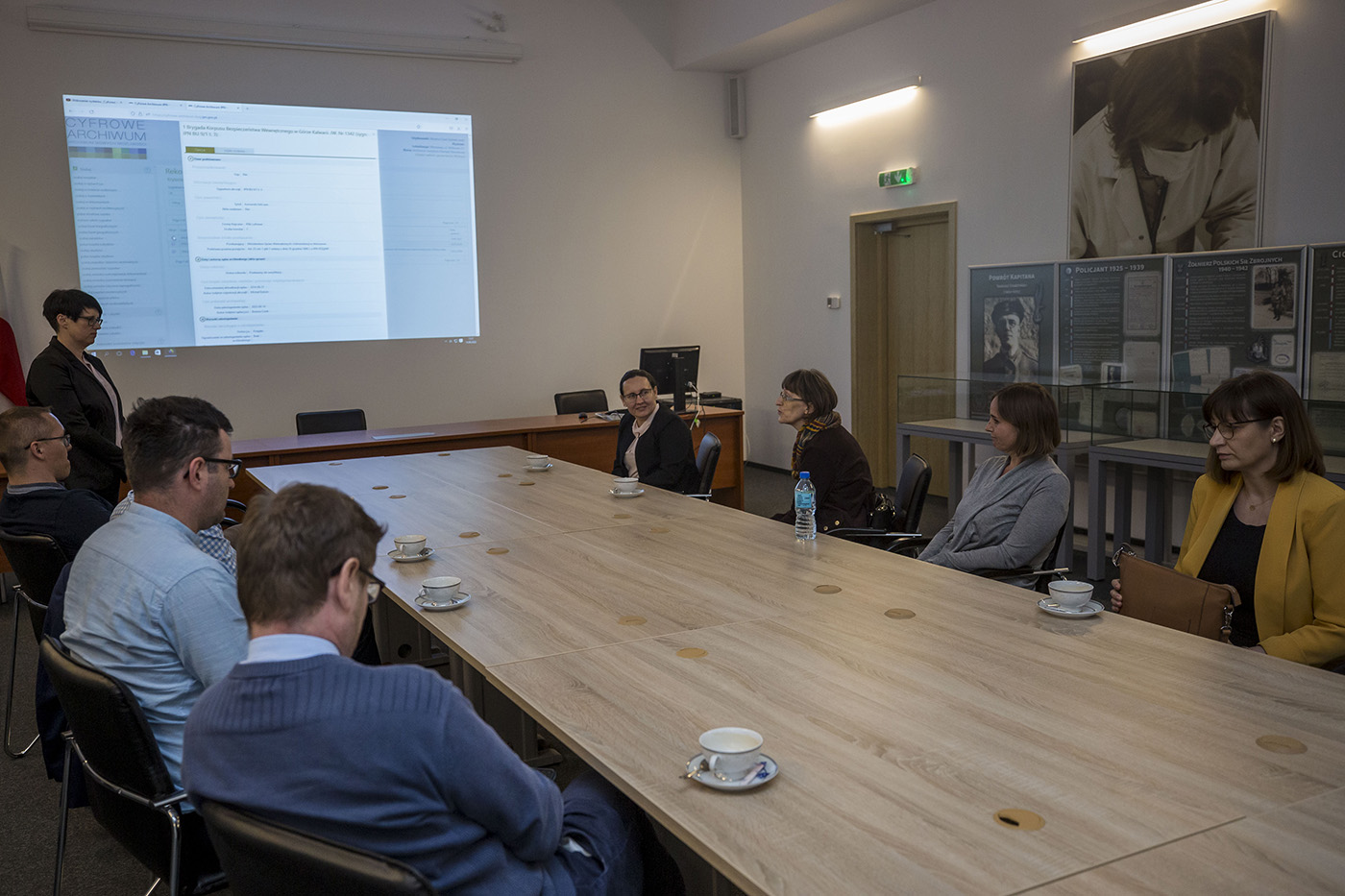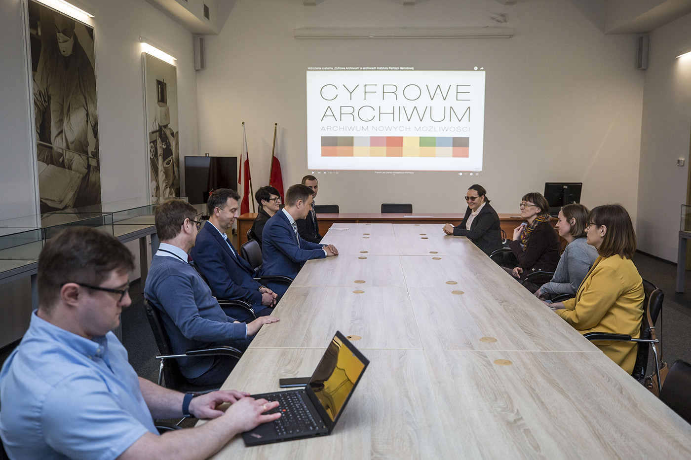 Gości przywitali dr Mariusz Żuławnik, zastępca dyrektora Archiwum IPN, oraz organizatorzy spotkania – przedstawiciele Wydziału Zarządzania i Rozwoju Cyfrowego Archiwum, a także pracownicy AIPN z innych wydziałów oraz Tomasz Hajnosz z Biura Informatyki IPN, kierownik projektu.