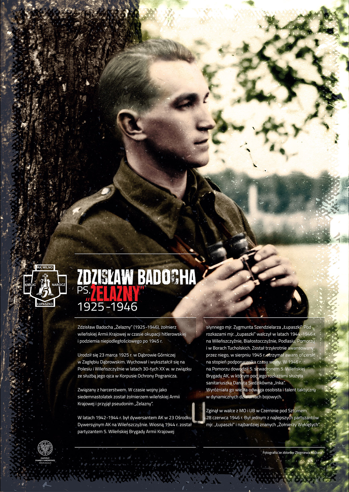 Podporucznik Zdzisław Badocha ps. „Żelazny”, urodzony 23 marca 1925 r., w Dąbrowie Górniczej żołnierz Okręgu Wileńskiego Armii Krajowej, oficer 5. Wileńskiej Brygady AK mjr. Zygmunta Szendzielarza „Łupaszki”. Zginął 28 czerwca 1946 r., w obławie MO i UB, w Czerninie pod Sztumem w wieku 21 lat. Jego szczątki zostały pogrzebane w nieznanym do dzisiaj miejscu, IPN od kilku lat podejmuje próby ich odnalezienia. „Żelazny” jest jednym z najbardziej znanych żołnierzy podziemia niepodległościowego po 1944 r. – Żołnierzy Wyklętych. Od wielu lat jego wizerunek jest dobrze rozpoznawalny wśród odbiorców najnowszej historii Polski. Ponieważ jednak związał swe losy z Kresami Rzeczpospolitej, z Białostocczyzną i Pomorzem, nie jest trwale kojarzony z rodzinnymi stronami, czyli Zagłębiem Dąbrowskim, które kryje się w cieniu sławy dokonań „Żelaznego” w walce o niepodległość Polski z narzuconym po 1944 r. systemem komunistycznym.
