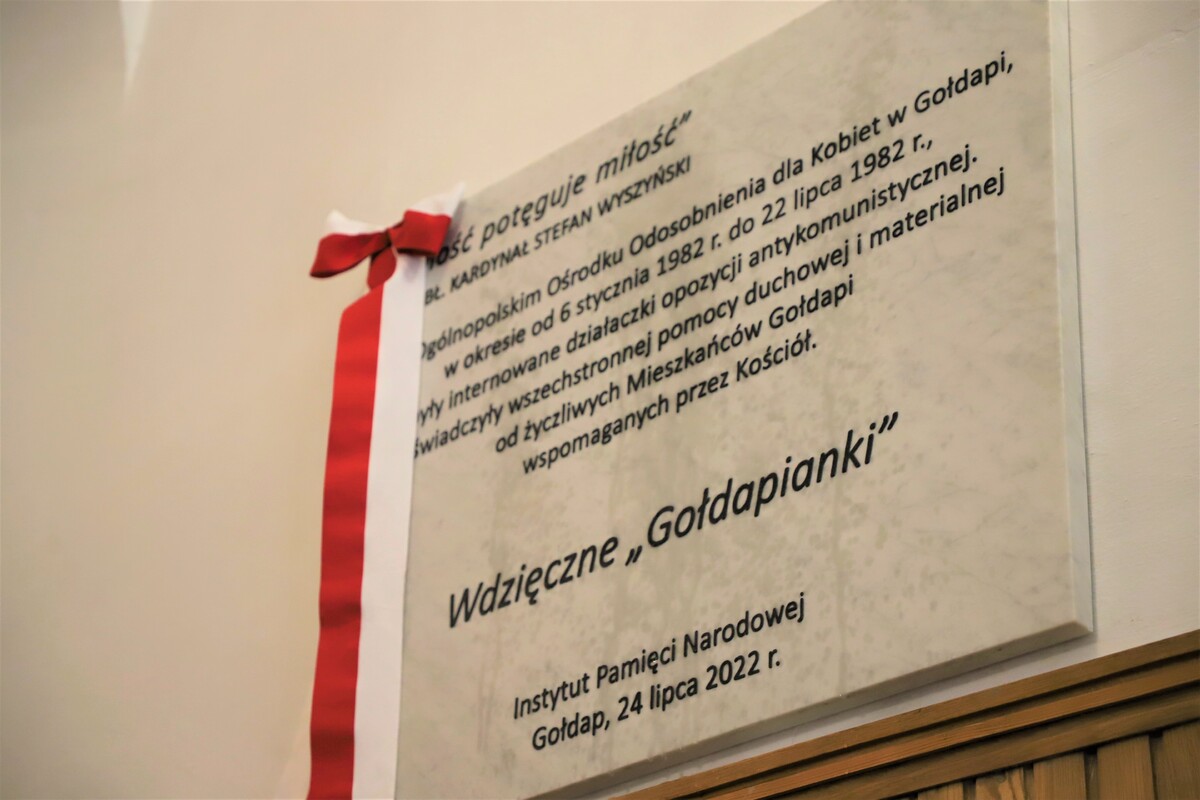 24 lipca 2022 r., podczas Mszy świętej w konkatedrze Najświętszej Maryi Panny Matki Kościoła w Gołdapi, dyrektor białostockiego Oddziału Instytutu Pamięci Narodowej dr hab. Piotr Kardela, pani Alina Cybula-Borowińska ze Stowarzyszenia Kobiet Internowanych, Więzionych i Represjonowanych w Stanie Wojennym oraz pełnomocnik wojewody warmińsko-mazurskiego ds. kombatantów i osób represjonowanych - Władysław Kałudziński, odsłonili tablicę poświęconą przez proboszcza ks. kan. Tomasza Lalaka, upamiętniającą pomoc mieszkańców Gołdapi i Kościoła internowanym kobietom.