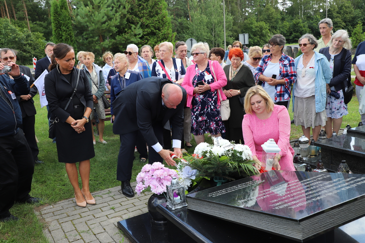 Następnie wszyscy udali się na cmentarz w Gołdapi, na którym znajduje się grób księdza prałata Aleksandra Smędzika - kapelana kobiet internowanych, na którym złożono wiązanki, zapalono znicze i odmówiono modlitwę.