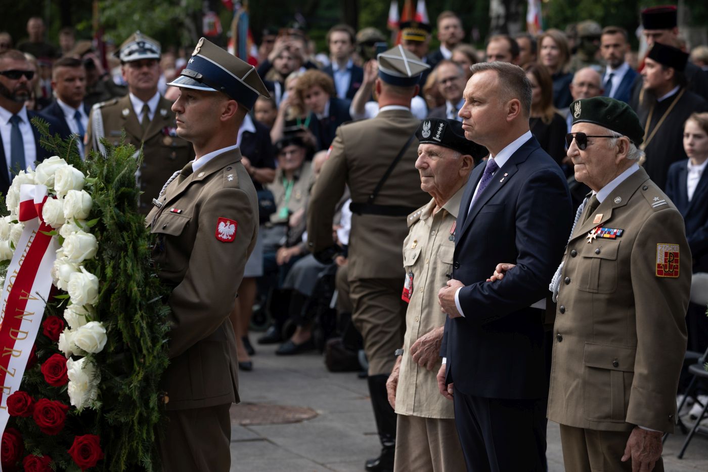 Prezydent RP Andrzej Duda. Uroczystości w 78. rocznicę wybuchu Powstania Warszawskiego przy pomniku Gloria Victis na Powązkach Wojskowych – Warszawa, 1 sierpnia 2022. Fot. Mikołaj Bujak (IPN)