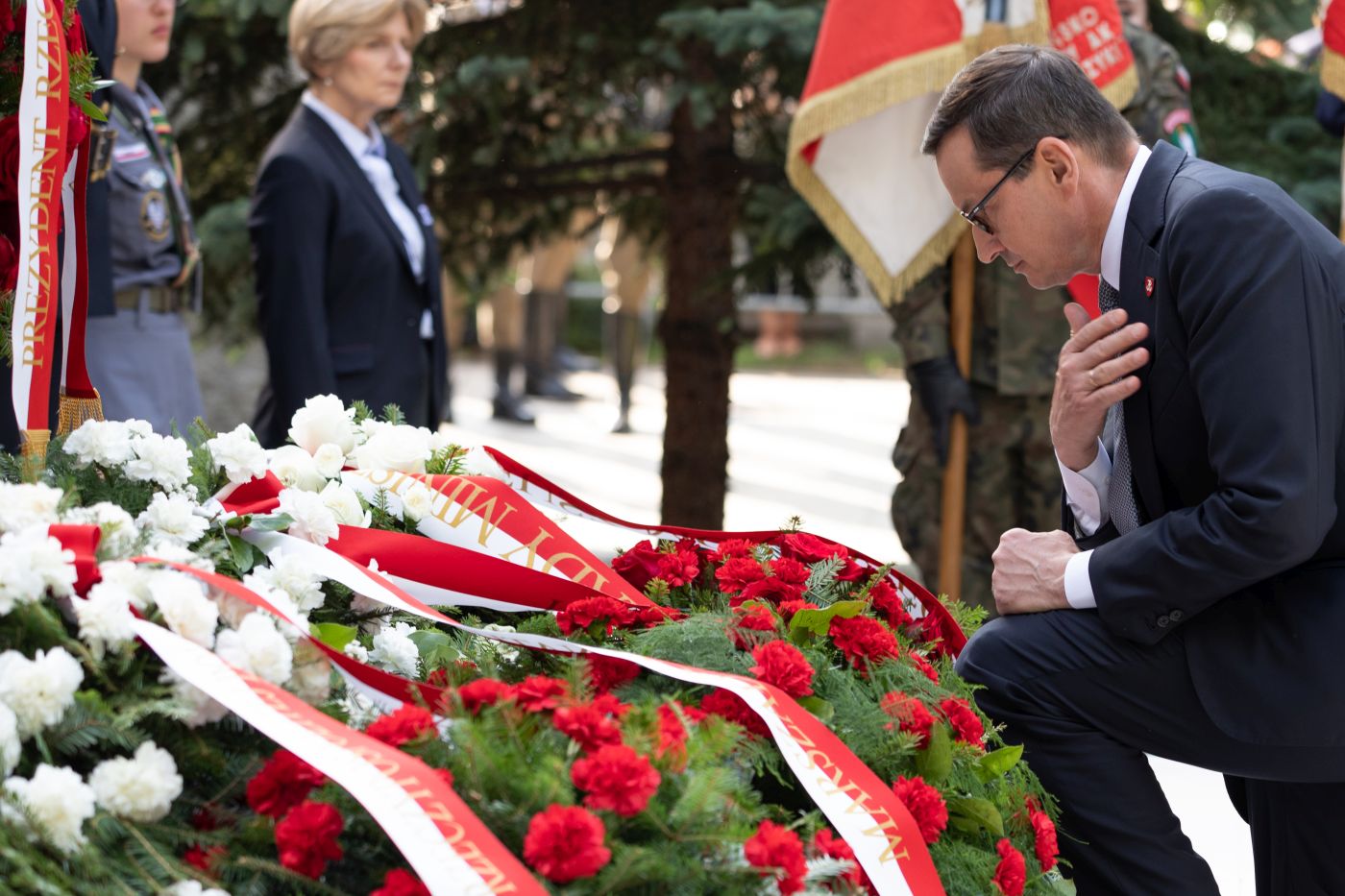 Premier Mateusz Morawiecki. Uroczystości w 78. rocznicę wybuchu Powstania Warszawskiego przy pomniku Gloria Victis na Powązkach Wojskowych – Warszawa, 1 sierpnia 2022. Fot. Mikołaj Bujak (IPN)