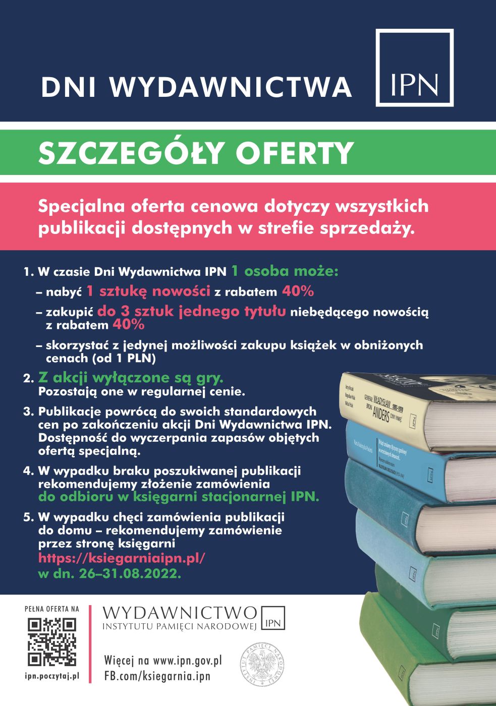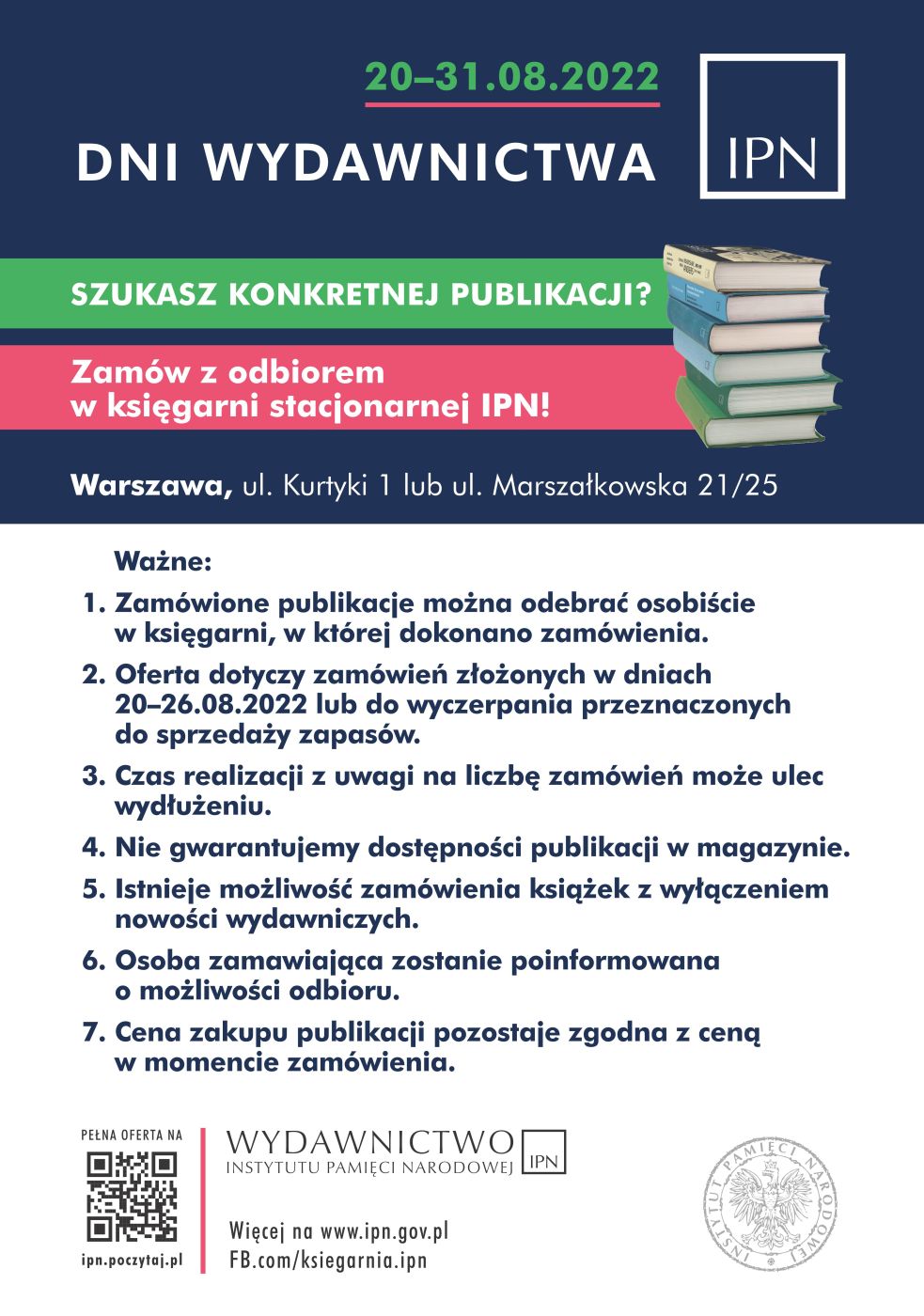 - 20–26 sierpnia 2022 – sprzedaż we wszystkich 13 księgarniach stacjonarnych IPN w całej Polsce