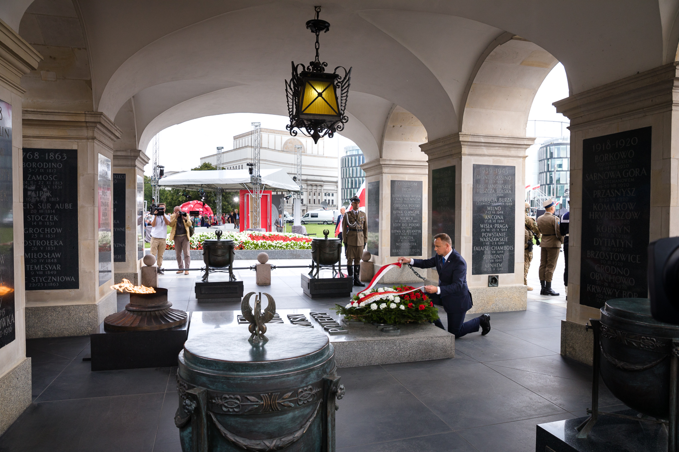W czasie uroczystości Andrzej Duda wręczył nominacje generalskie i odznaczenia państwowe. Prezydent złożył też wieniec od Narodu na płycie Grobu Nieznanego Żołnierza.