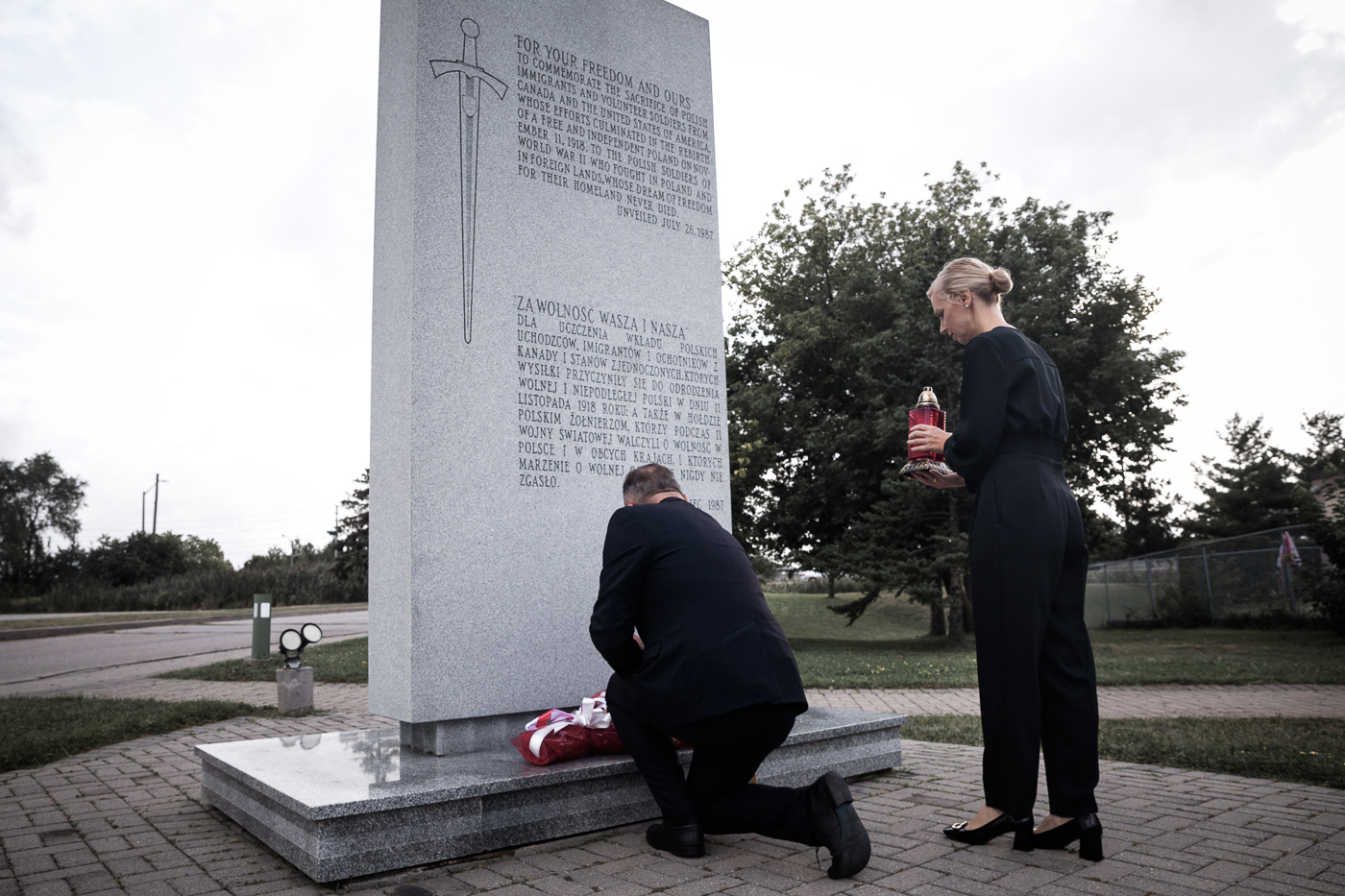 Przed uroczystym wernisażem dr. hab. Karol Polejowski oraz Magdalena Pszczółkowska, konsul generalny RP w Toronto, złożyli kwiaty i zapalili znicze przed pomnikiem „Spirala Zwycięstwa”, poświęconym weteranom Polskich Sił Powietrznych okresu II wojny światowej, oraz przed Pomnikiem Patrioty, będącym wyrazem wdzięczności dla rodaków oddanych służbie ojczyźnie.