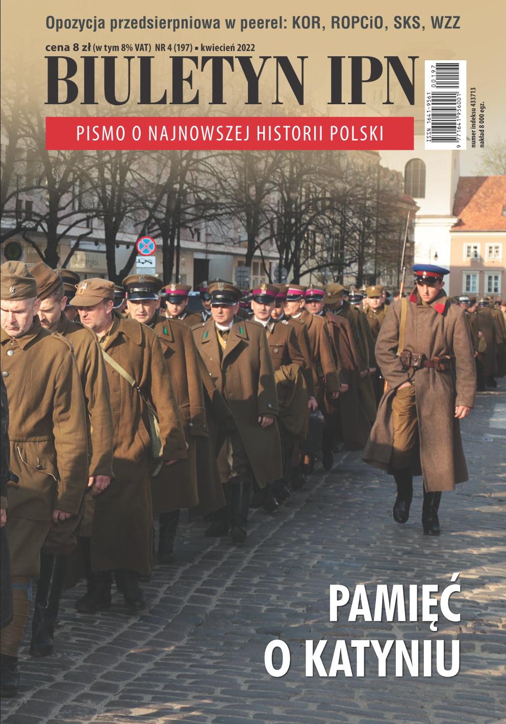KSIĄŻKI Jerzy Kirszak, Bogusław Polak, Michał Polak, Generał broni Władysław Anders 1892–1970, Warszawa 2022 Adam Rafał Kaczyński, Sowietyzacja Wołynia 1944–1956, Warszawa 2022 Obserwacja w służbie SB. Studia i szkice, red. nauk. Monika Komaniecka-Łyp, Kraków 2022 Tomasz Bereza, Marcin Bukała, Michał Kalisz, Wincenty Witos 1874–1945, wydanie II uzupełnione, Rzeszów–Warszawa 2022 Monika Tomkiewicz, Zbrodnia ponarska 1941–1944, Warszawa 2022 Paweł Jaworski, W cieniu „żelaznej kurtyny”. Szwecja wobec Szczecina 1945–1989, Szczecin–Warszawa 2022 Grzegorz Rąkowski, Kresowe rezydencje. Zamki, pałace i dwory na dawnych ziemiach wschodnich II RP, t. 1: Województwo wileńskie, Warszawa 2017 Atlas polskiego podziemia niepodległościowego 1944–1956, zespół redakcyjny: Sławomir Poleszak (redaktor naczelny), Rafał Wnuk, Agnieszka Jaczyńska, Magdalena Śladecka, Lublin – Warszawa 2020, Wydanie II poprawione i uzupełnione Rok 1939 w dzienniku Hansa Franka, tłumaczenie Viktor Grotowicz, wstęp i opracowanie Paweł Kosiński, Warszawa 2019 PERIODYKI „Biuletyn IPN” nr 4/2022 – Opozycja przedsierpniowa. Pamięć o Katyniu „Biuletyn IPN” nr 7–8/2022 – Czym była PRL „Biuletyn IPN” nr 5/2022 – Zbrodnie spod czerwonej gwiazdy „CzasyPismo o historii Górnego Śląska” 2(20)/2021 „Biuletyn IPN” nr 6/2022 – Polskie Siły Zbrojne na Zachodzie KOMIKSY Wojenna odyseja Antka Srebrnego 1939–1944. Zeszyt 4. Bitwa pod Monte Cassino 1944 r. Wojenna odyseja Antka Srebrnego 1939–1944. Zeszyt 2. Ucieczka z nieludzkiej ziemi 1940 r. Wojenna odyseja Antka Srebrnego 1939–1944. Zeszyt 1. Obrona Grodna 1939 r. Wojenna odyseja Antka Srebrnego 1939–1944. Zeszyt 3. Szczury Tobruku 1941 r. Wojenna odyseja Antka Srebrnego 1939–1946. Zeszyt 10. Przemarsz przez piekło 1944 r. Wojenna odyseja Antka Srebrnego 1939–1944. Zeszyt 7. Kierunek Wilhelmshaven 1945 r. Wojenna odyseja Antka Srebrnego 1939–1946. Zeszyt 8. Na partyzanckich ścieżkach 1946 r. Wojenna odyseja Antka Srebrnego 1939–1944. Zeszyt 6. Operacja „Market Garden” 1944 r. Wojenna odyseja Antka Srebrnego 1939–1946. Zeszyt 9. W matni 1946 r. Wilcze tropy. Zeszyt 6. „Szary” – Antoni Heda GRY „Miś Wojtek” „ORP Orzeł” „Niepodległa” „ZnajZnak – Kresy” „Polak Mały” do góry