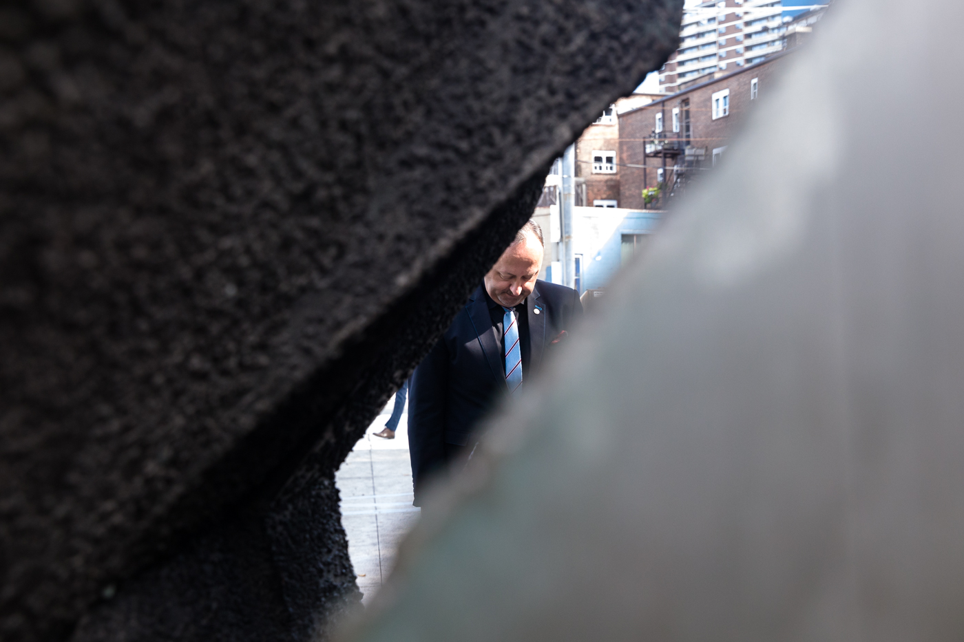 Przed tablicą upamiętniającą ofiary katastrofy smoleńskiej – Toronto, 23 sierpnia 2022. Fot. Sławek Kasper (IPN)