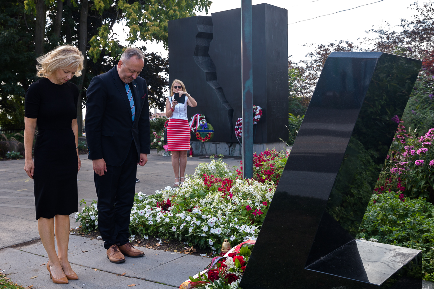 Złożenie kwiatów pod Pomnikiem Katyńskim w Toronto – 23 sierpnia 2022. Fot. Sławek Kasper (IPN)