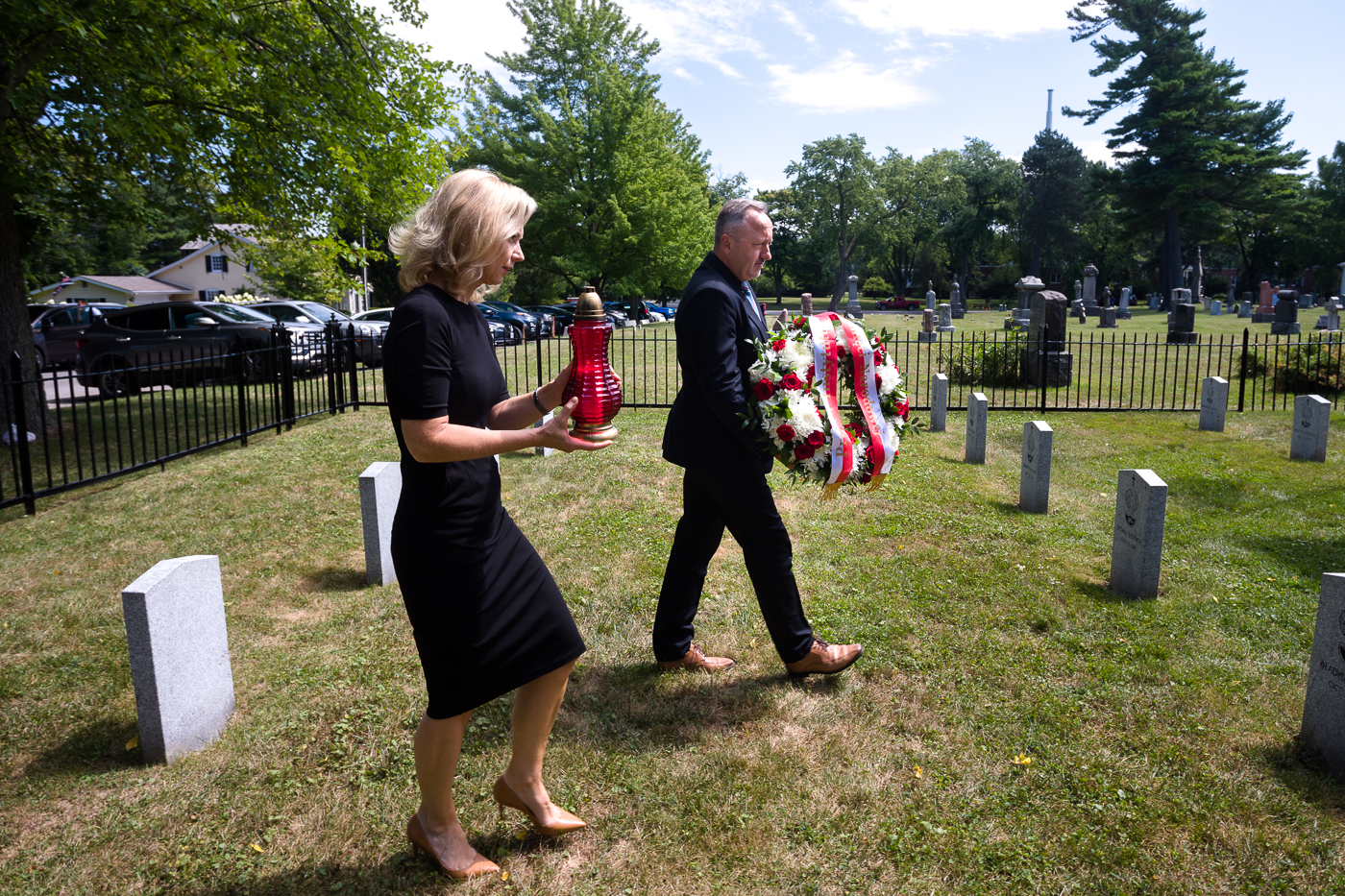 Dr. hab. Karol Polejowski, wiceprezes IPN, oraz Magdalena Pszczółkowska, konsul generalny RP w Toronto na polskim cmentarzu wojskowym w Niagara on the Lake (Kanada) – 23 sierpnia 2022. Fot. Sławek Kasper (IPN)