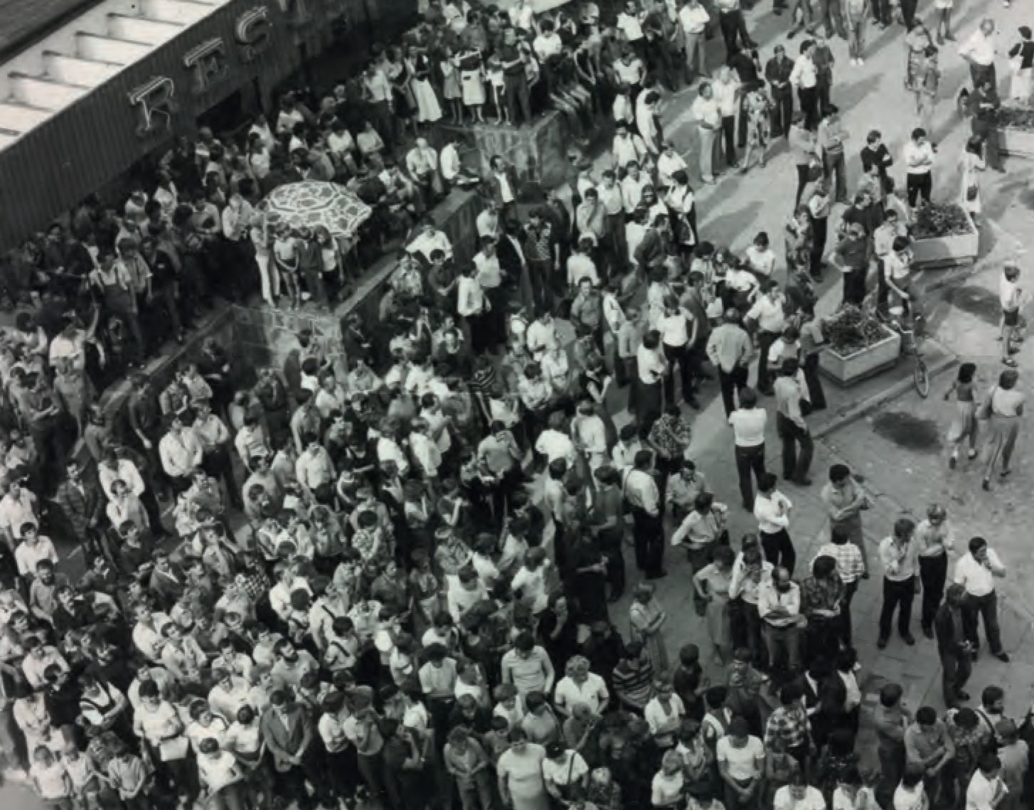 Po godzinie 14.00, kiedy w kopalniach pracę zakończyli górnicy pierwszej zmiany, w centrum Lubina zaczęły się pojawiać grupy mieszkańców. O 15.00 pracę zakończyli pracownicy innych zakładów pracy i na pl. Wolności naprzeciwko Ratusza zgromadziło się ok. 2000 osób.