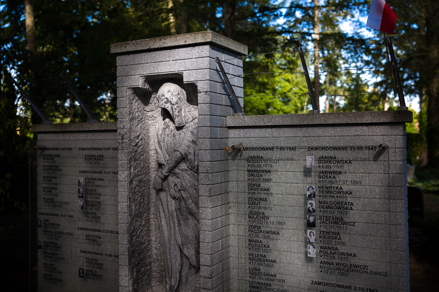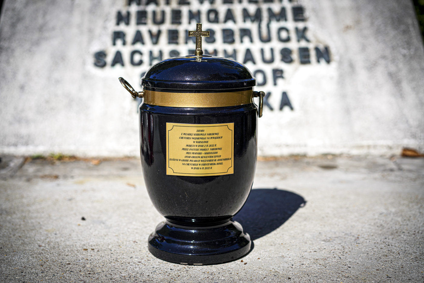W grobie zamordowanych Polek, obok trumien ze szczątkami, umieszczono urnę z ziemią z polskiej nekropolii narodowej – Cmentarza Wojskowego na Powązkach w Warszawie.